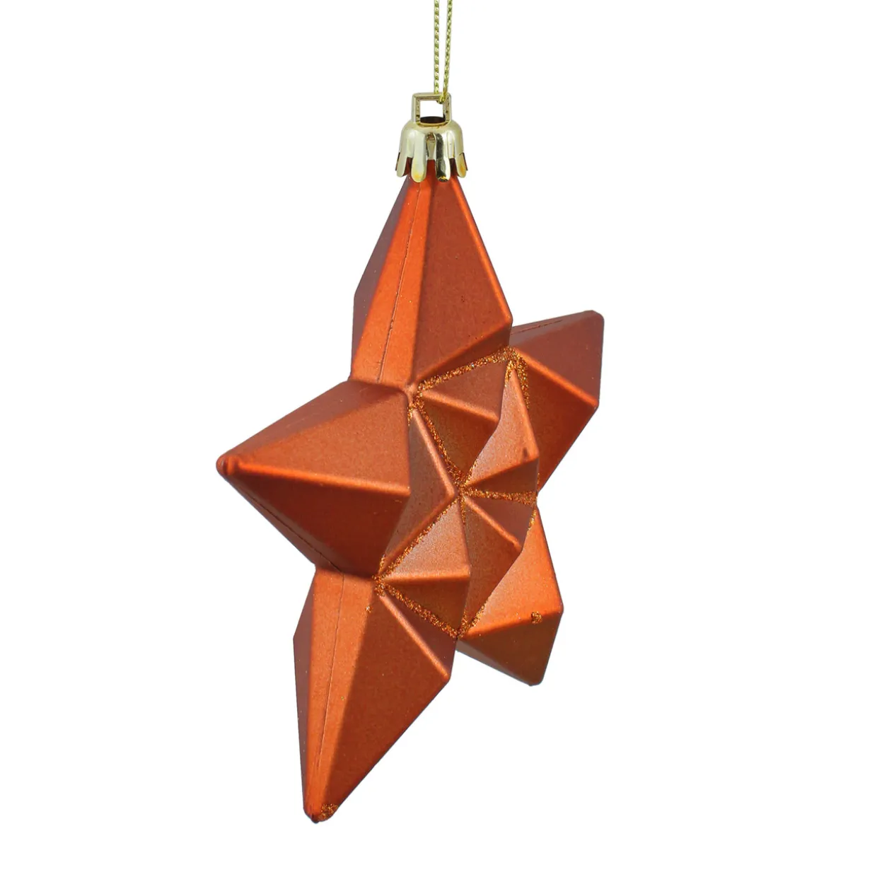 - Matte Orange Glittered Star Christmas Ornaments