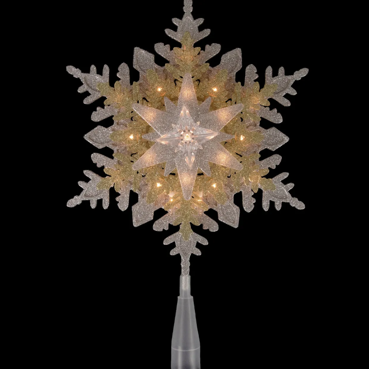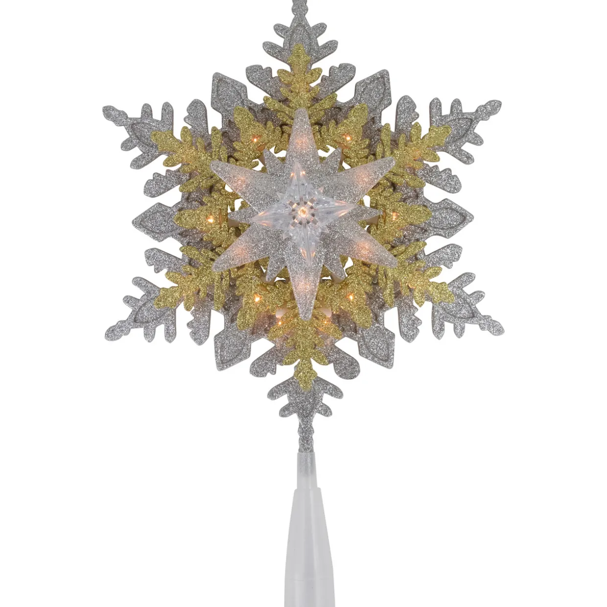 - Lighted Silver And Gold Snowflake Christmas Tree Topper