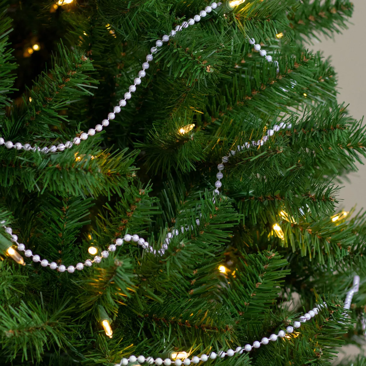 - White Iridescent Pearl Beaded Christmas Garland