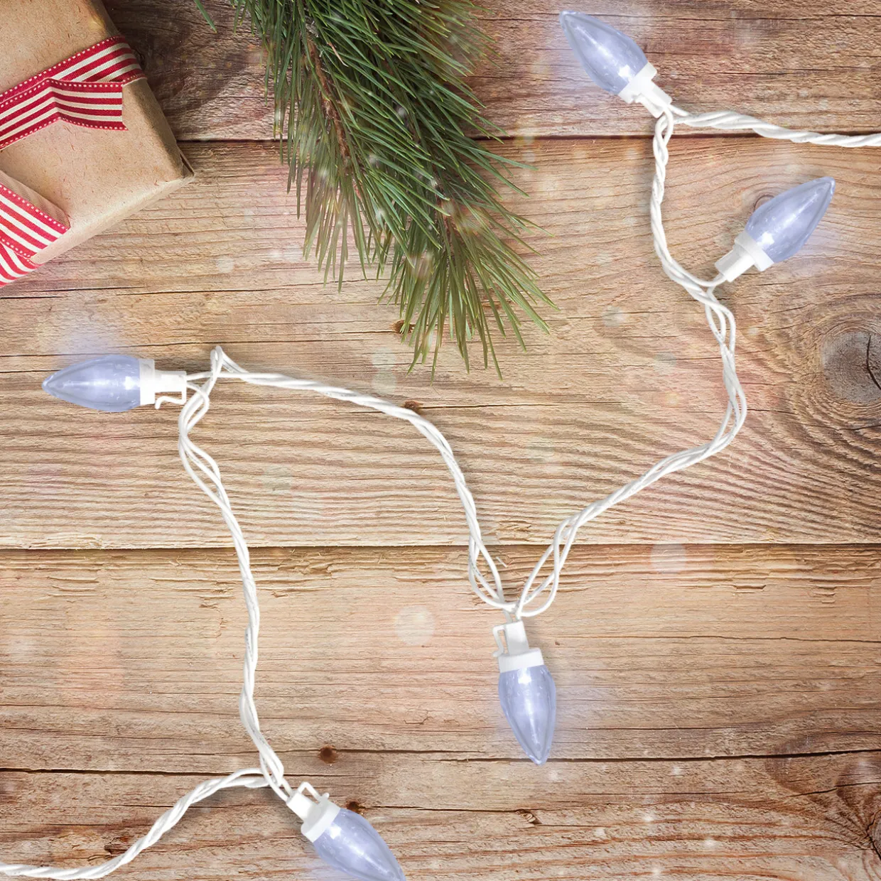 - 25 Count Pure White Led C7 Christmas Lights On White Wire