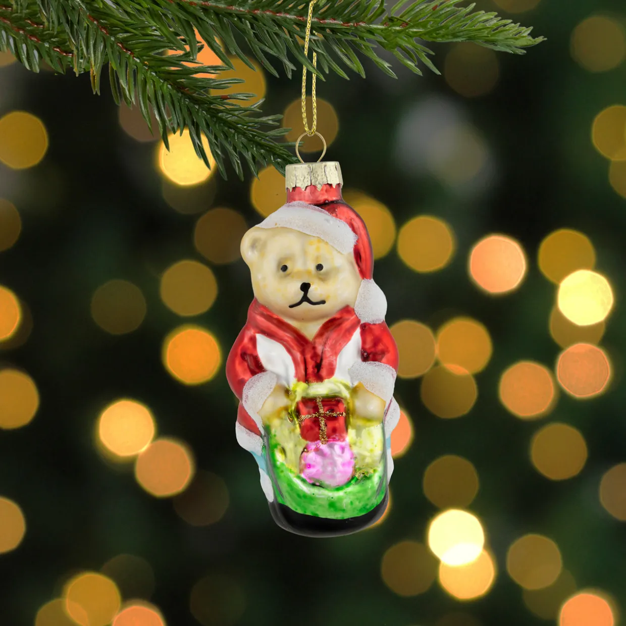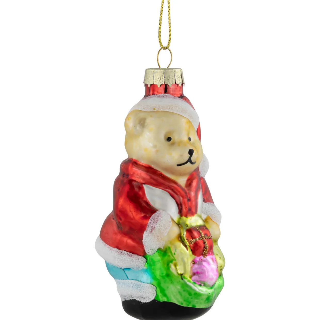 - Santa Bear Glass Christmas Ornament