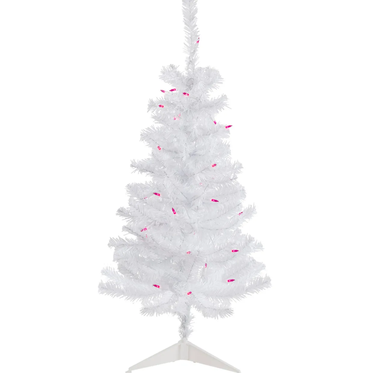 - Pre lit with 35 pink incandescent mini lights; 107 branch tips