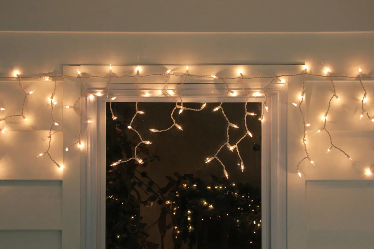 - Clear Mini Icicle Christmas Lights On White Wire