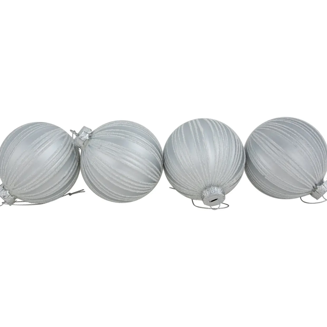 - Set Of 4 Silver Grayish Glass Christmas Ornaments