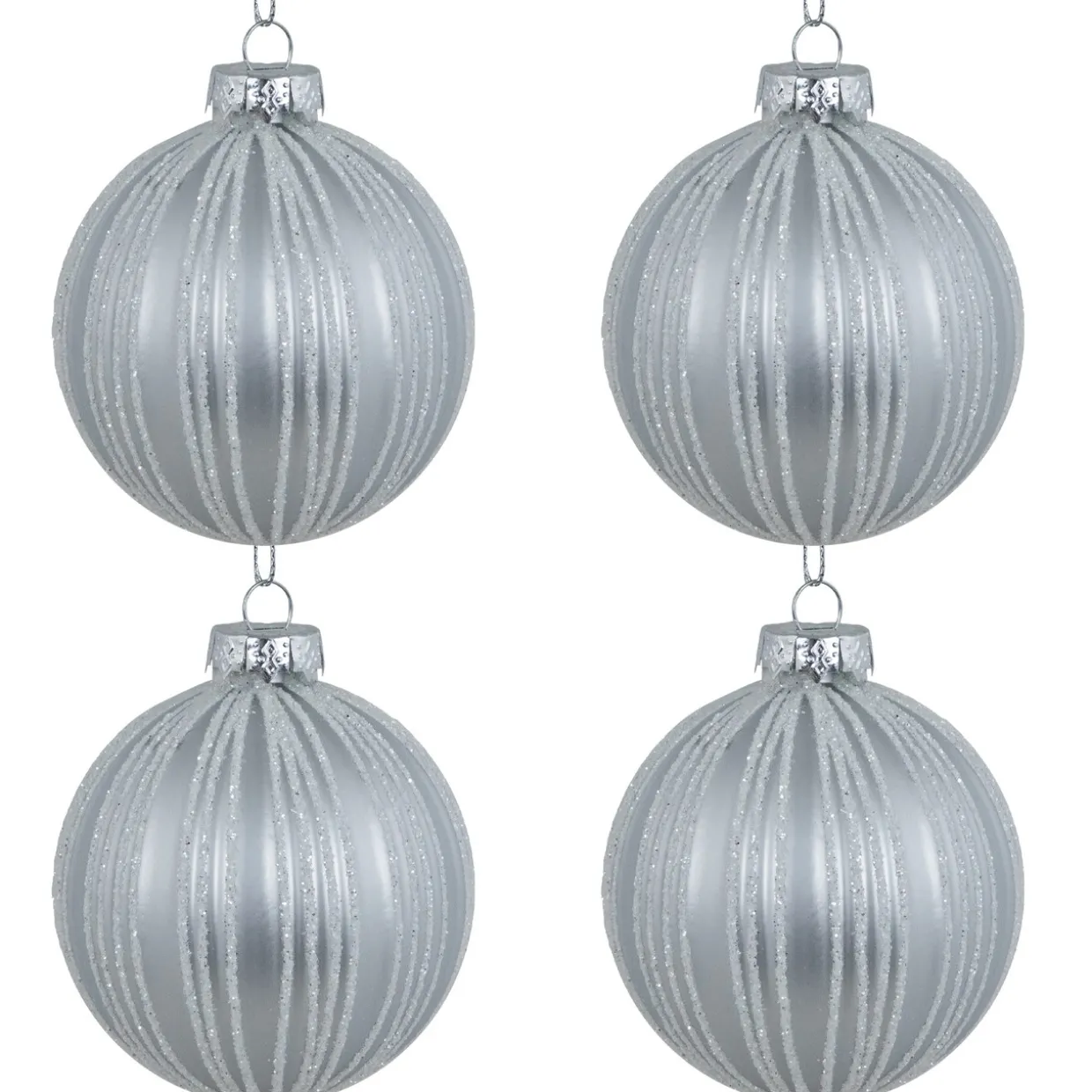 - Include silver hanging cords and ornament caps