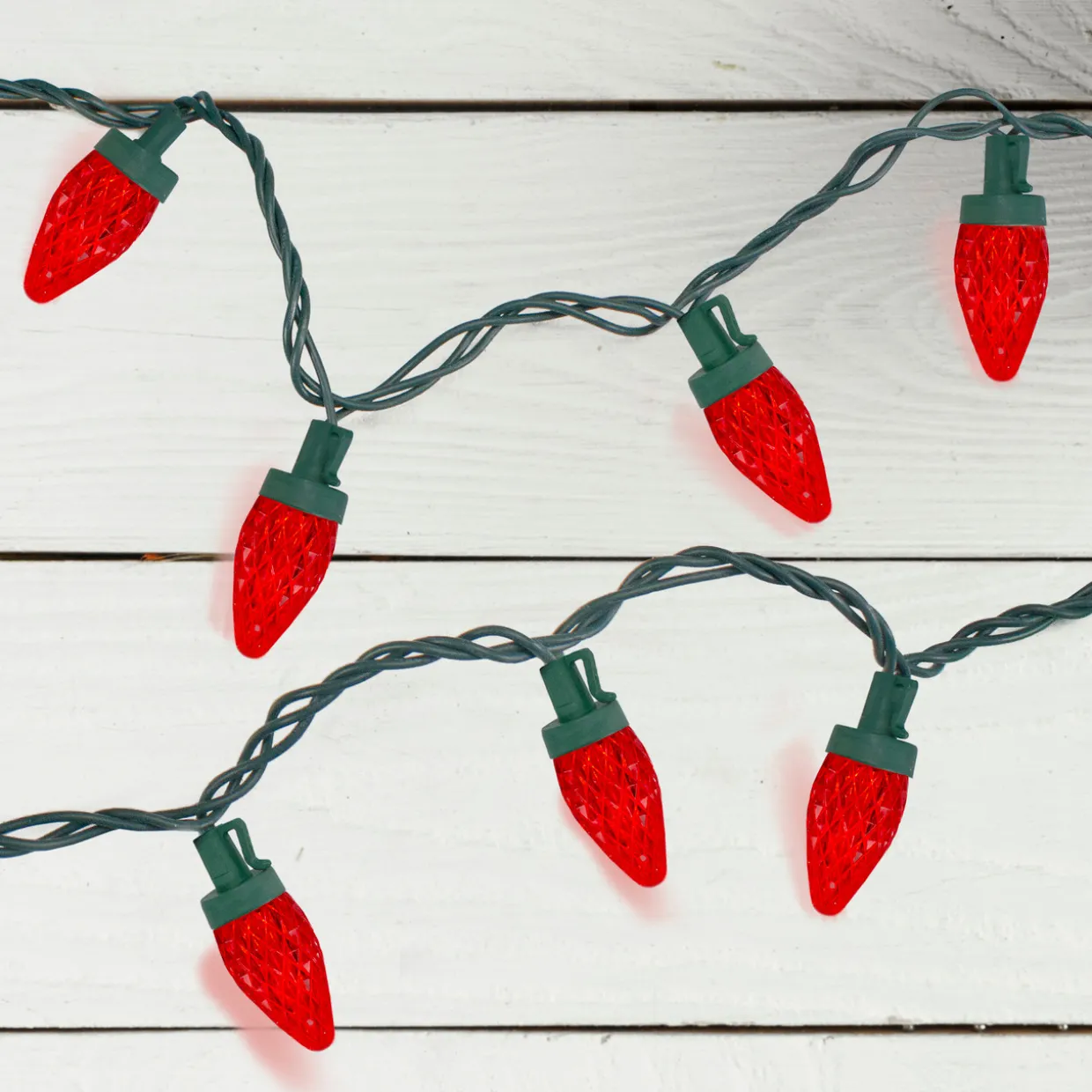 - Set Of 50 Red Led Faceted C7 Christmas Lights On Green Wire