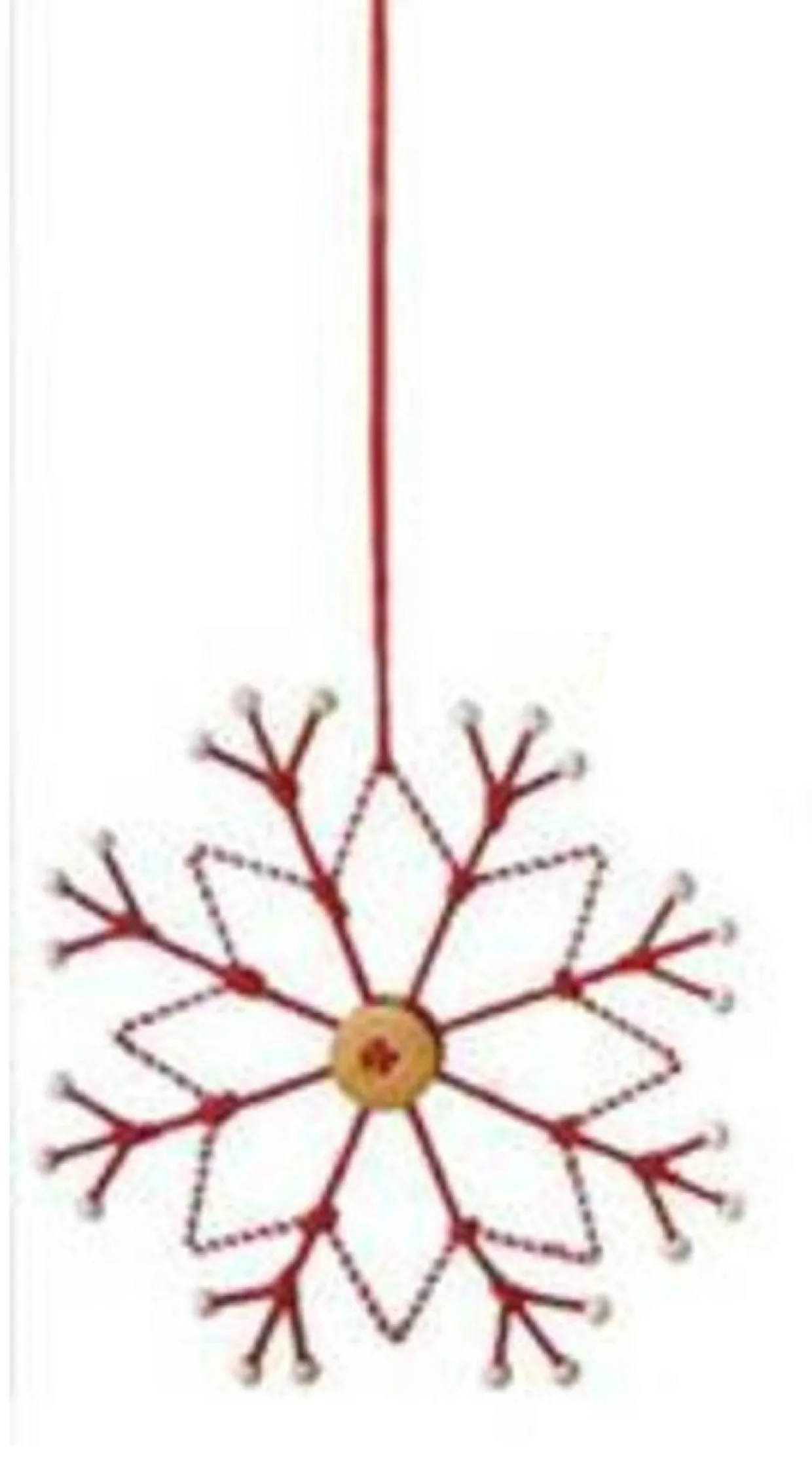 Add a touch of rustic charm to your tree with this red, white and tan snowflake ornament