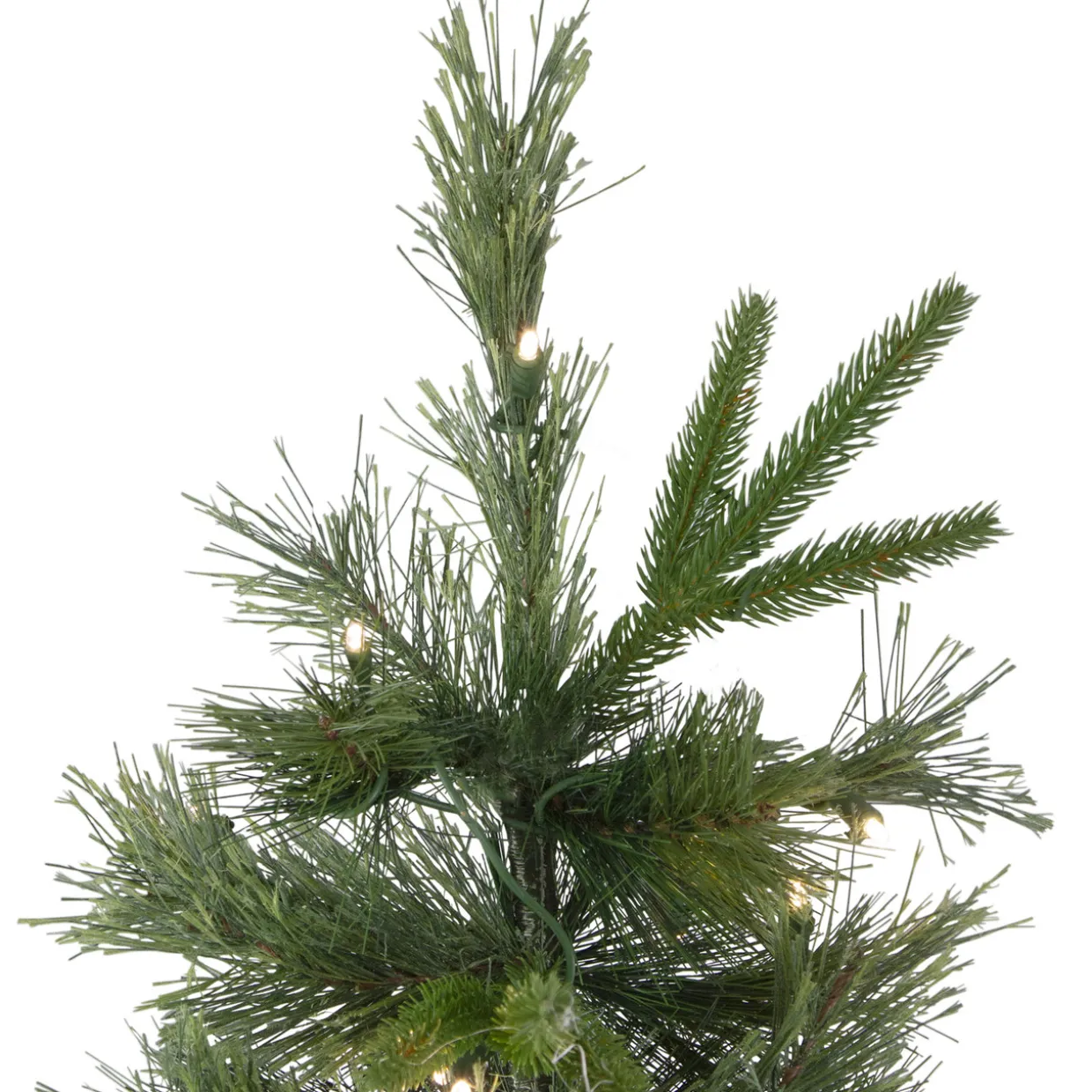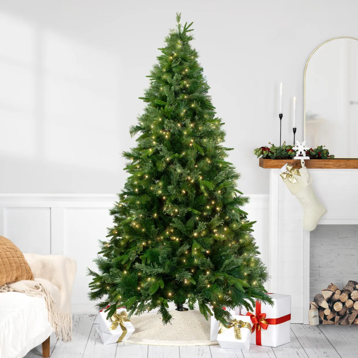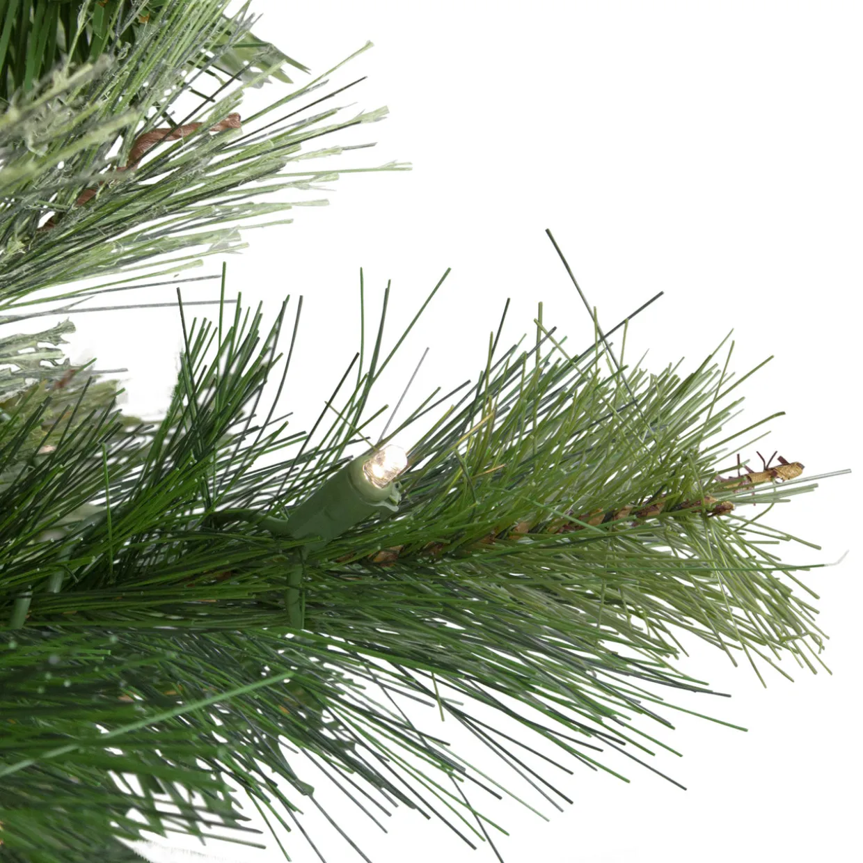 - 500 warm white LED lights; hinged branch construction