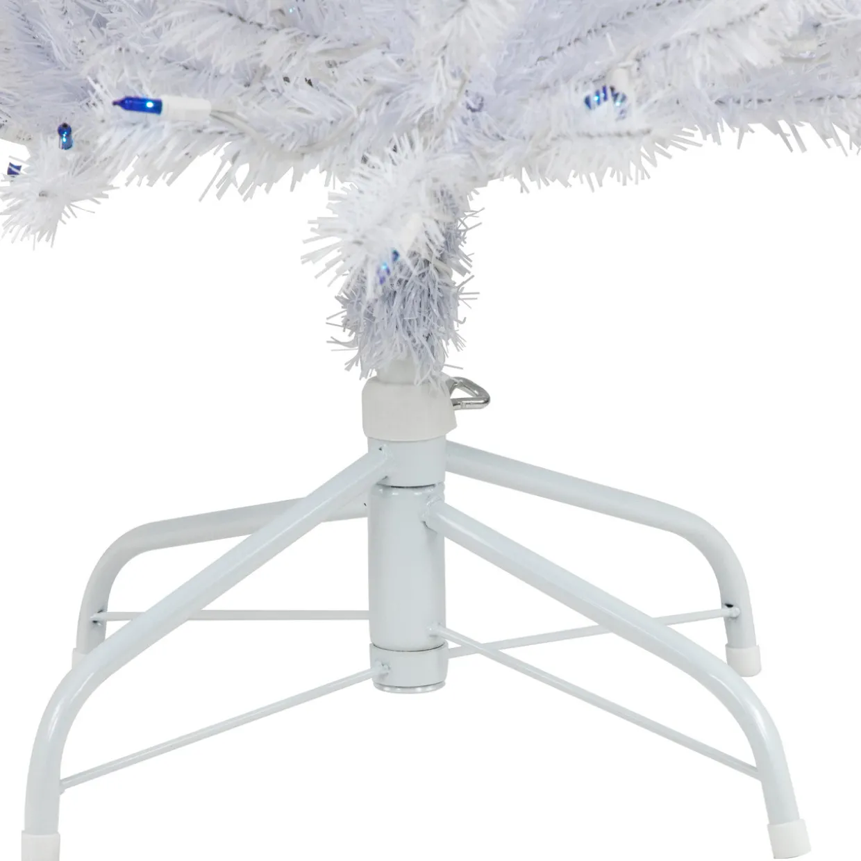 - Recommended for indoor use only; comes with a white metal tree stand