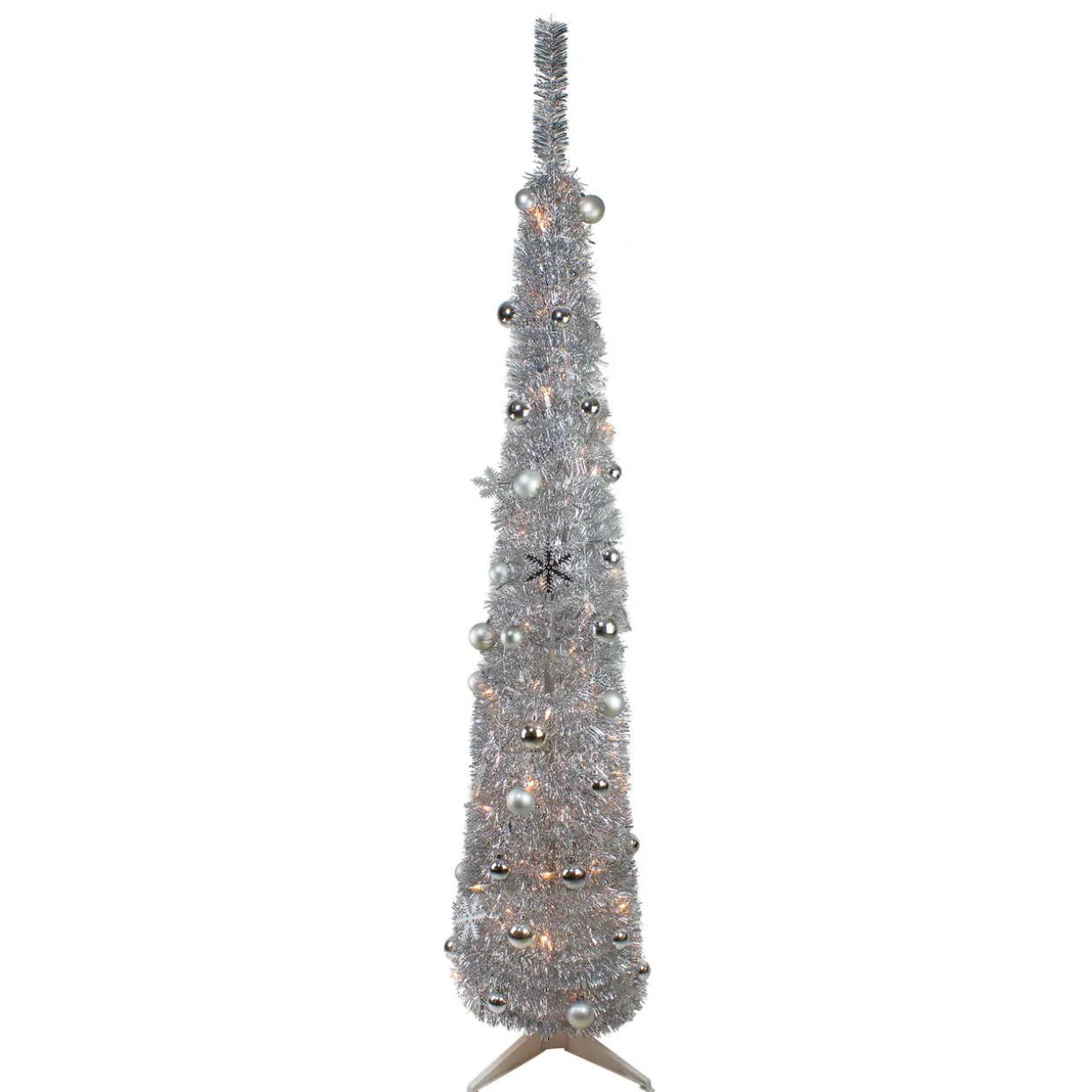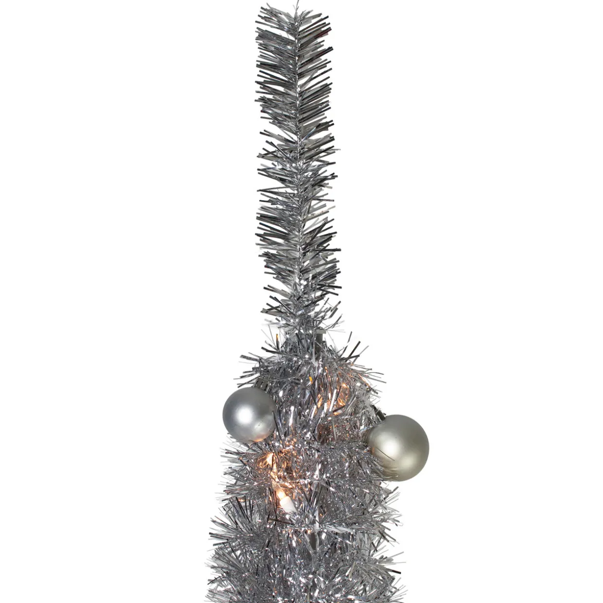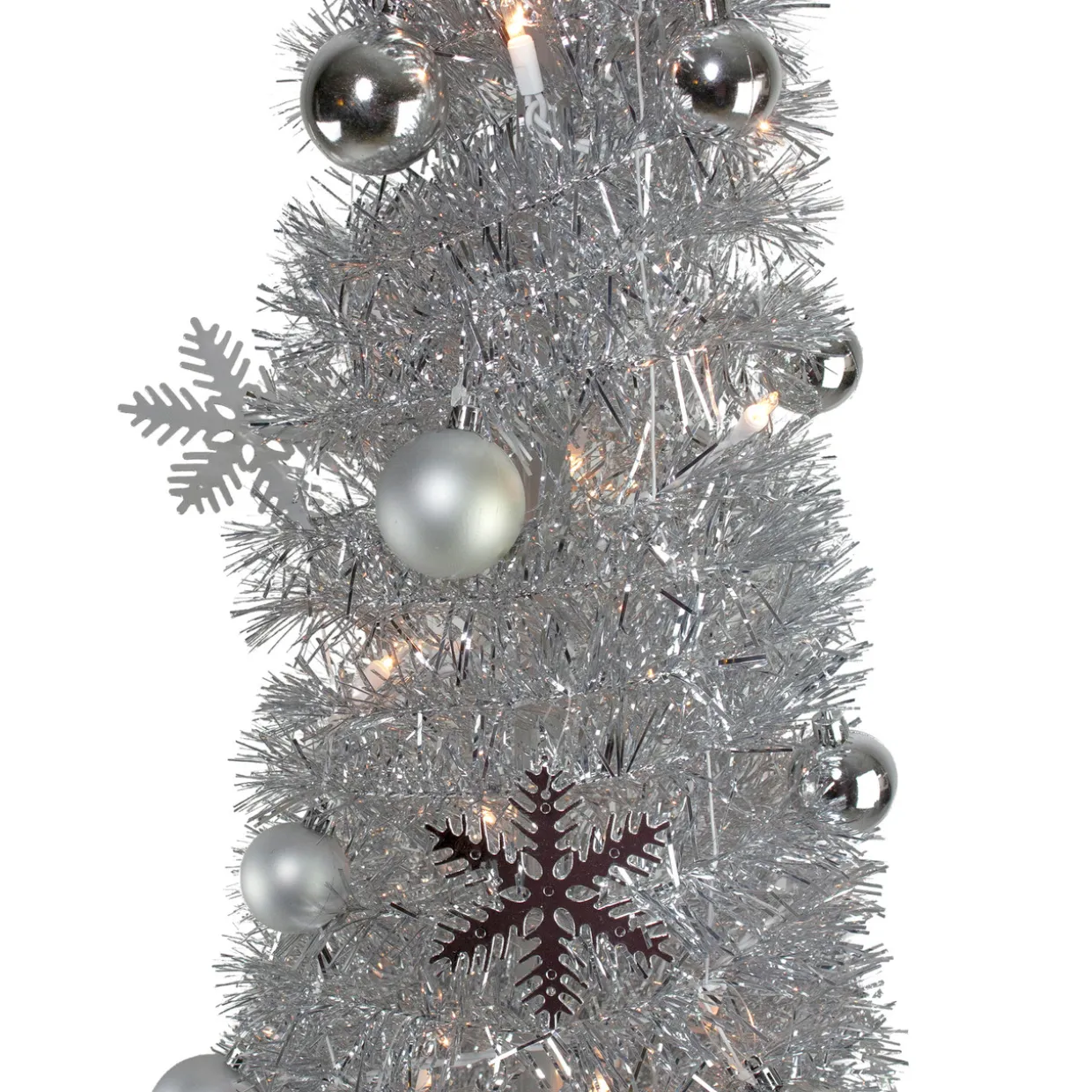 - Prelit Silver Tinsel Pop Up Artificial Christmas Tree