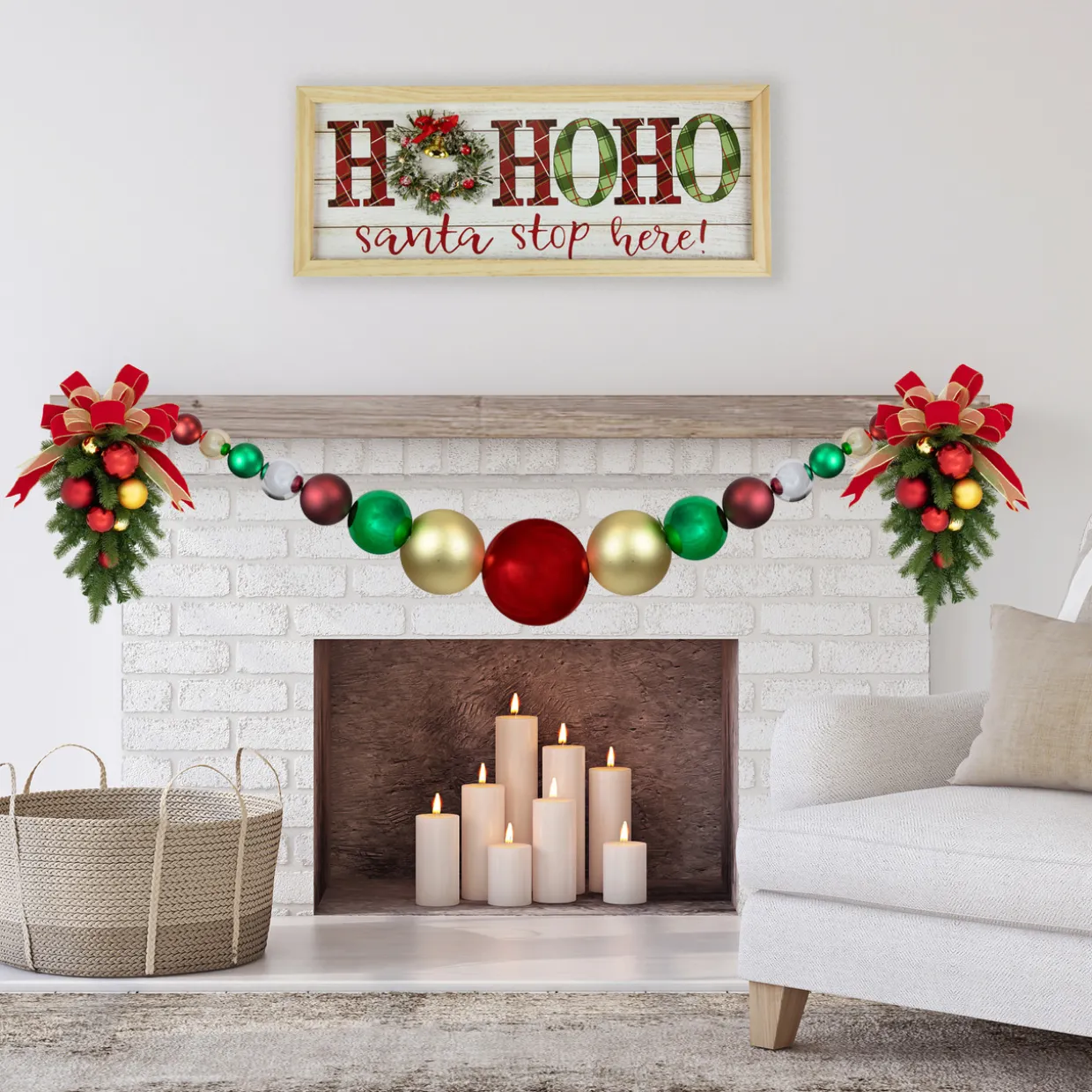 - Measures 6 feet long with varying sized ornaments