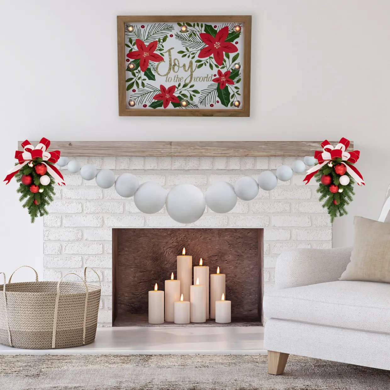 - Measures 6 feet long with varying sized ornaments