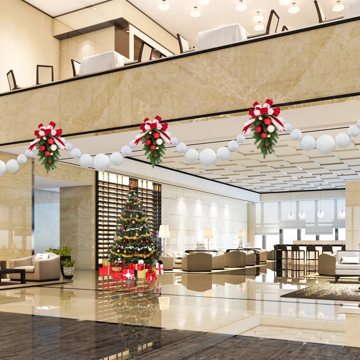 - White Shatterproof Ball Ornament Christmas Swag