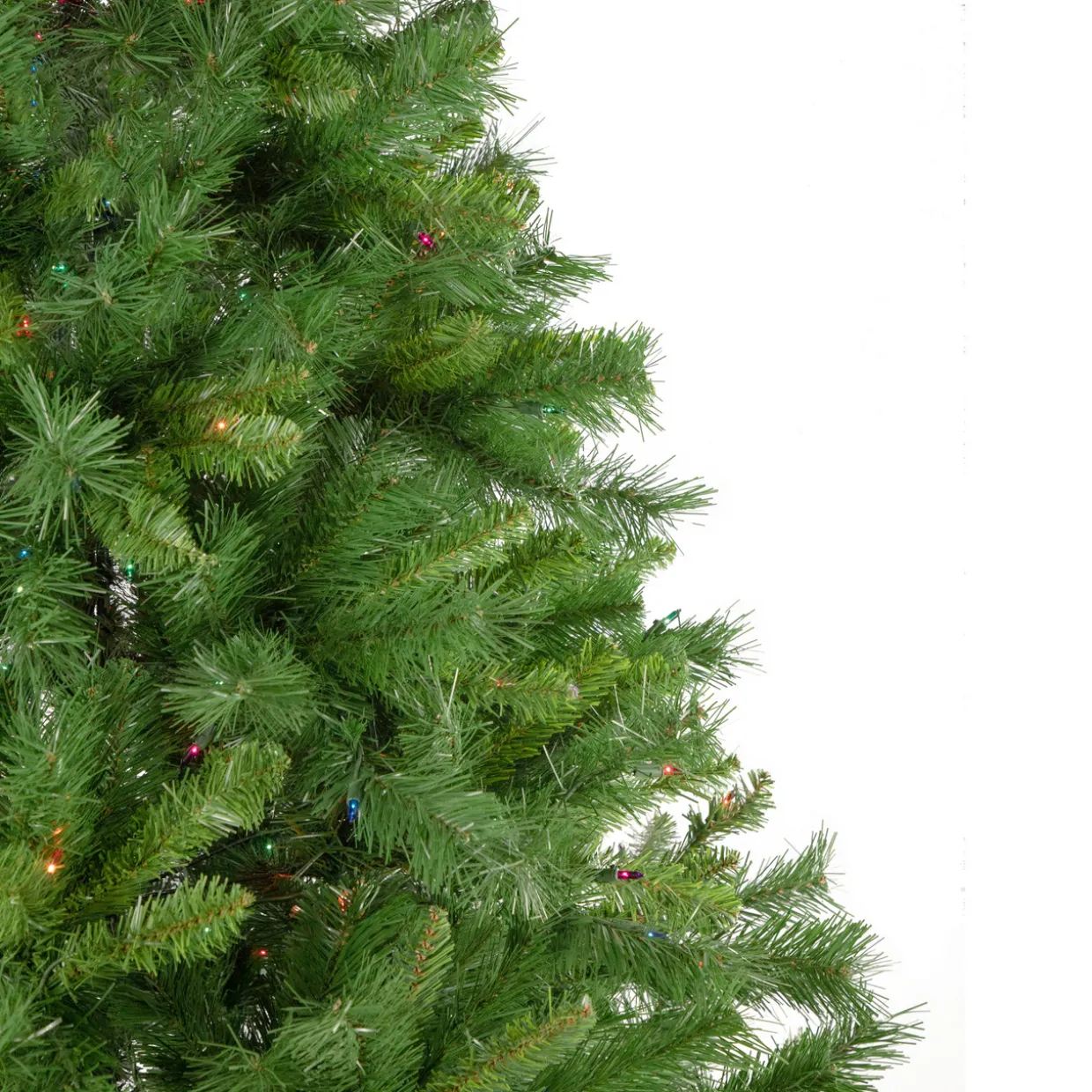 - Pre lit with 500 multi color incandescent mini lights; 1198 tapered PVC tips