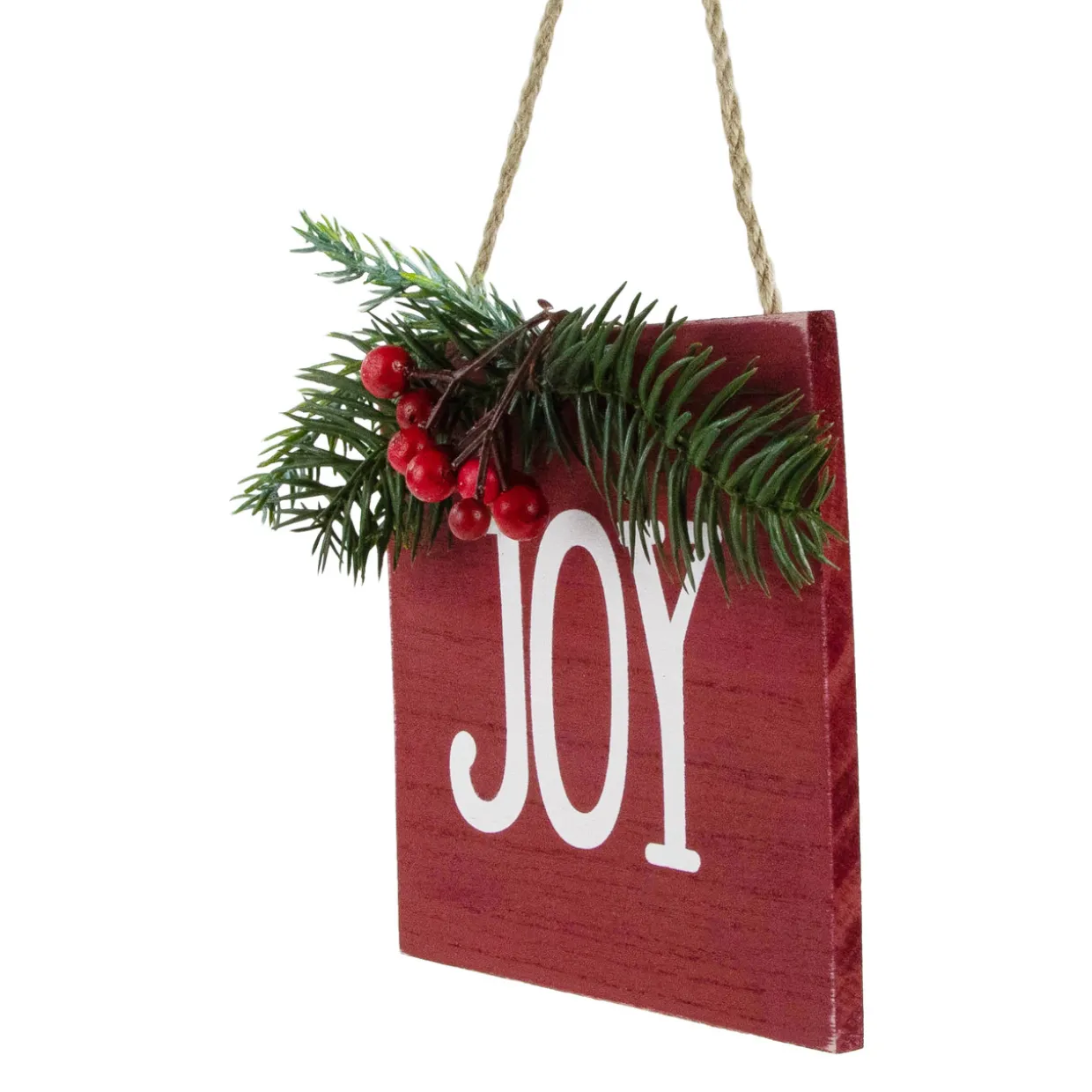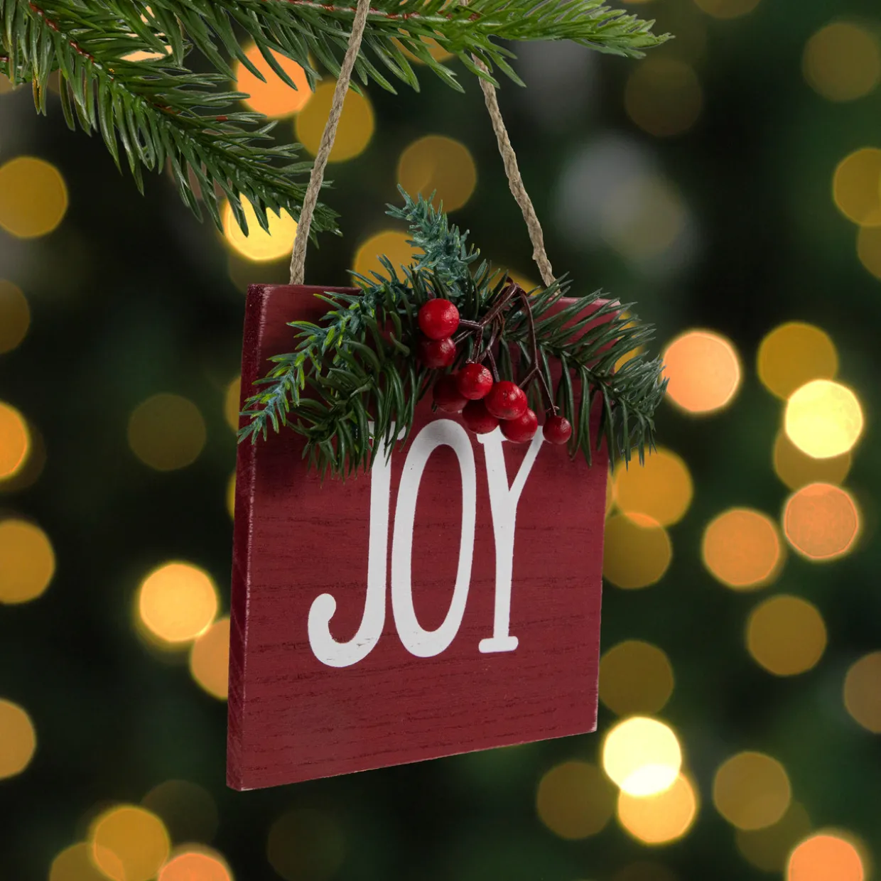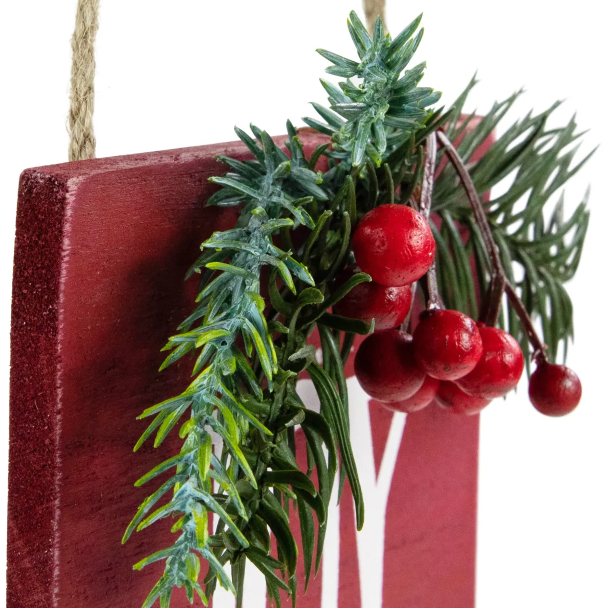 - Features red berries and green pine