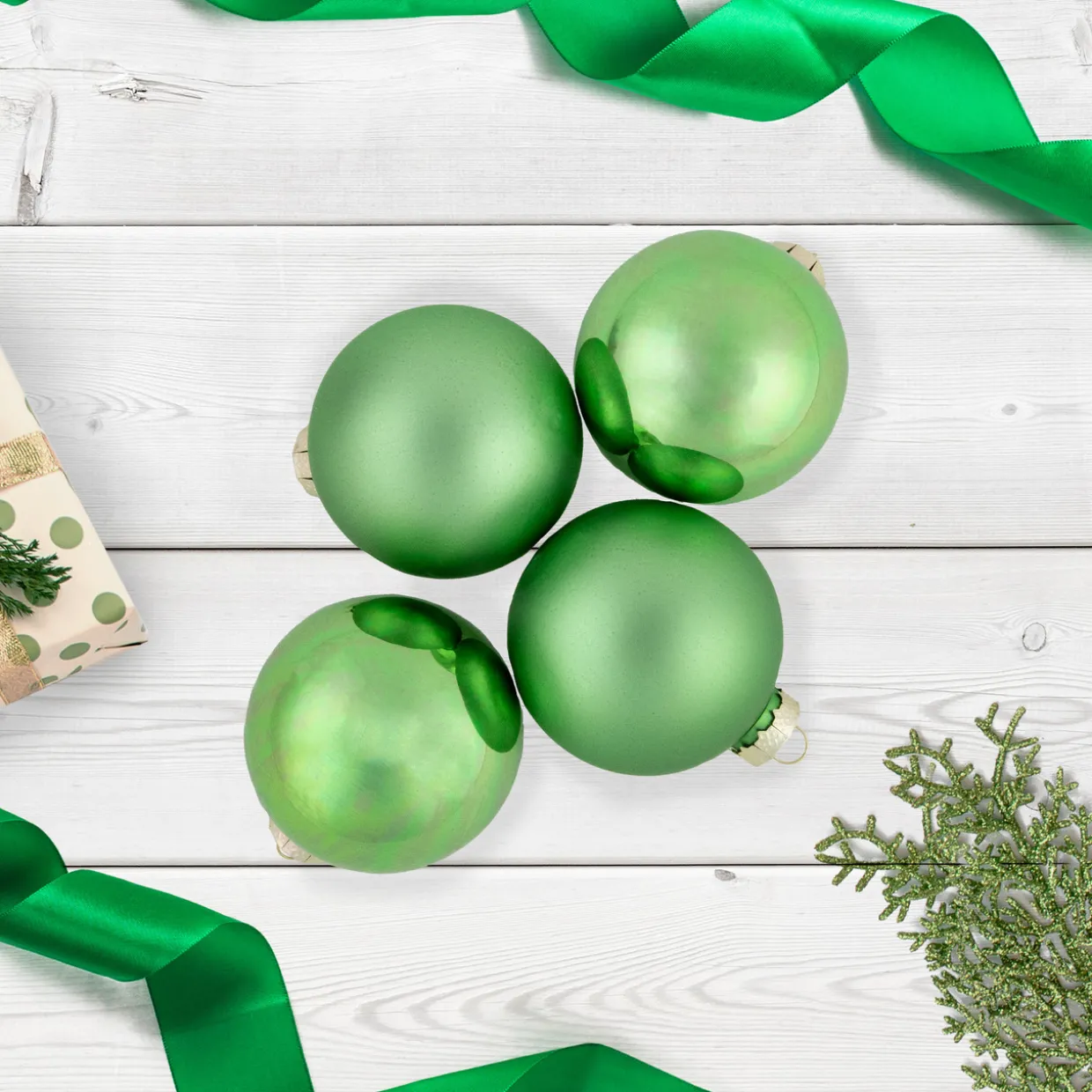 - Ornament set includes 4 matte and 5 shiny