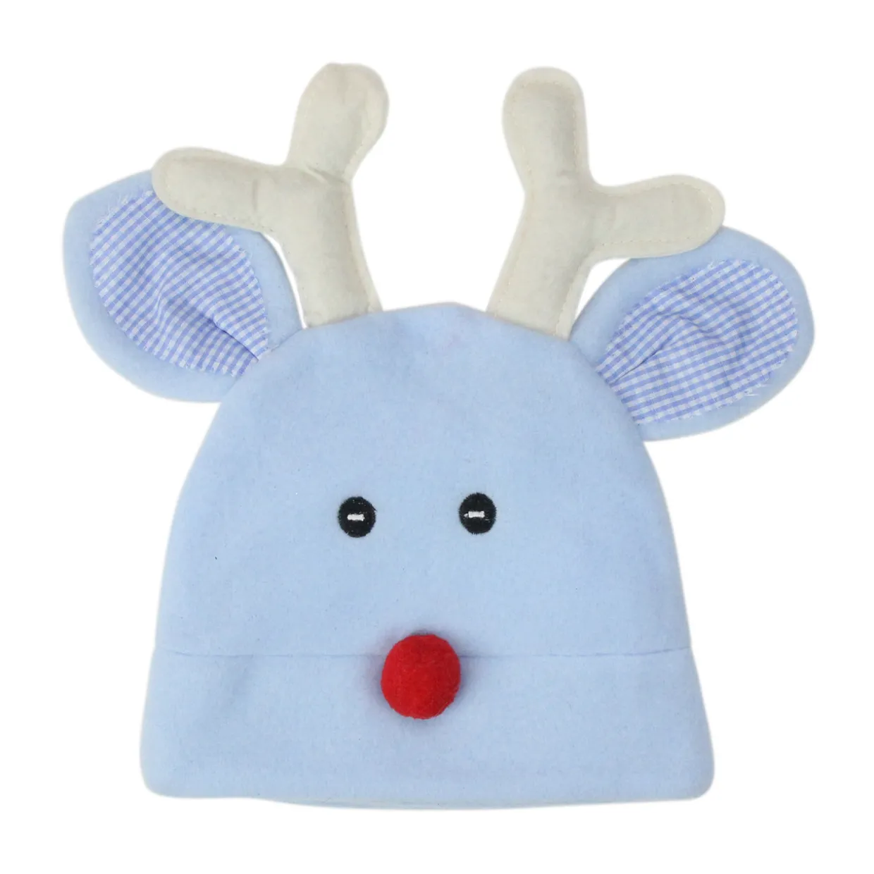 - Blue And White Fleece Reindeer Face Infant Christmas Hat