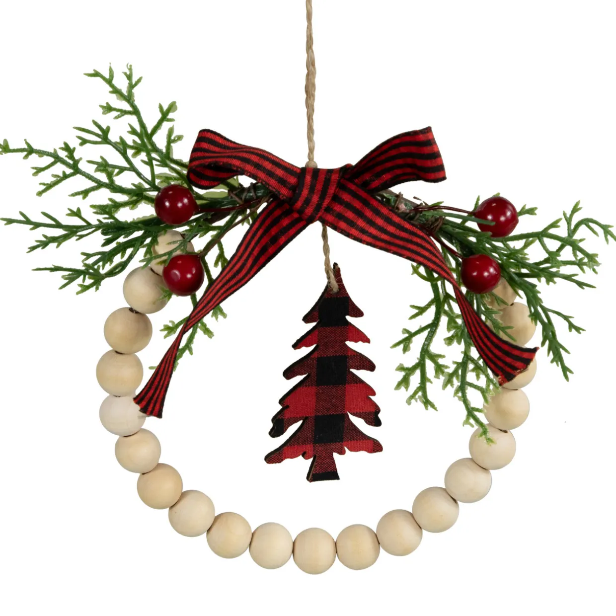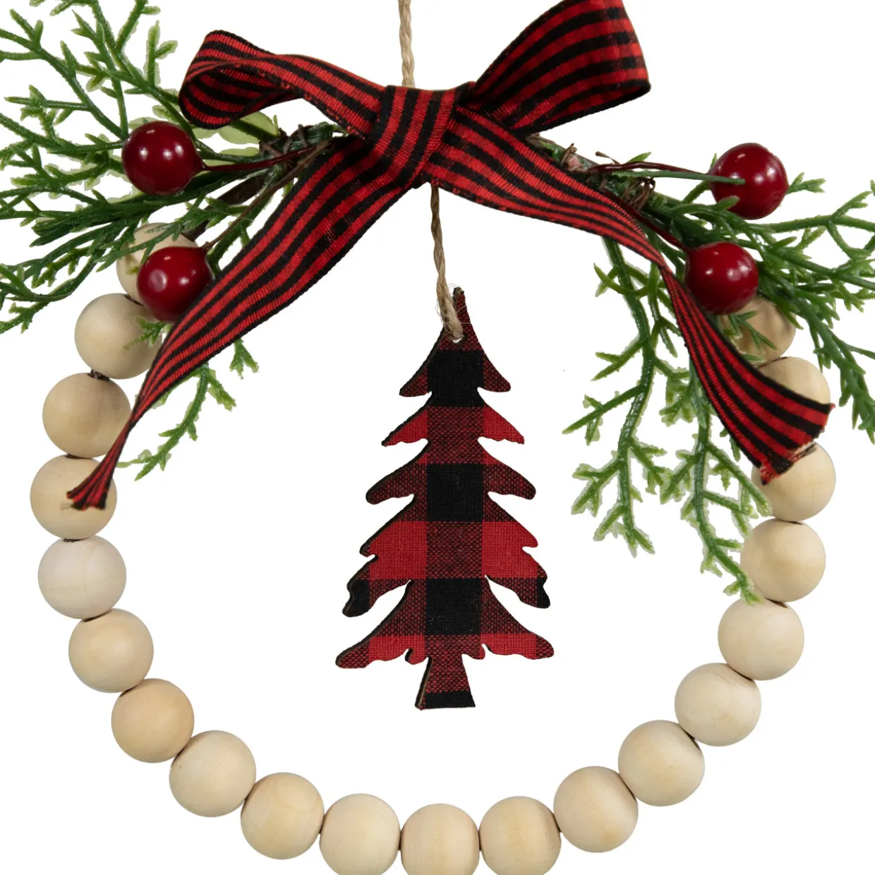 - Wooden Beaded Wreath Christmas Ornament