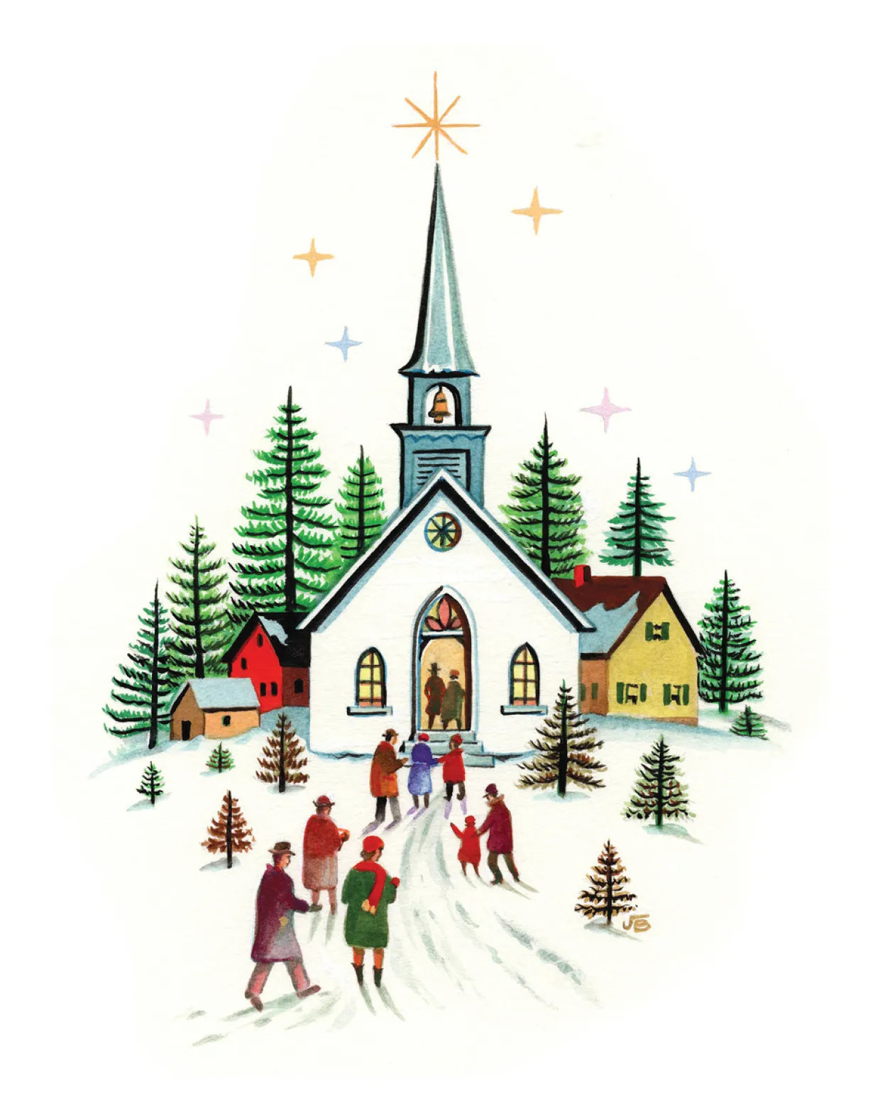 Christmas Church Winter Scene Wall Decor Art Print