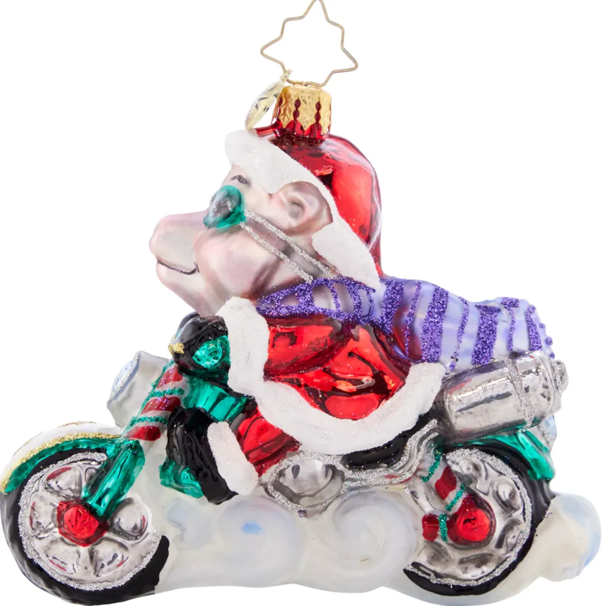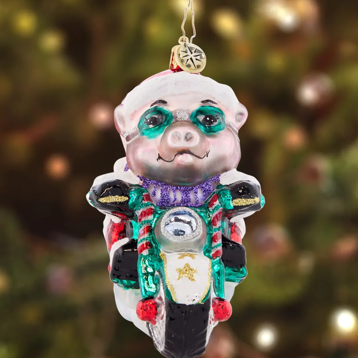 - Decorated hog and motorcycle ornament; comes gift boxed