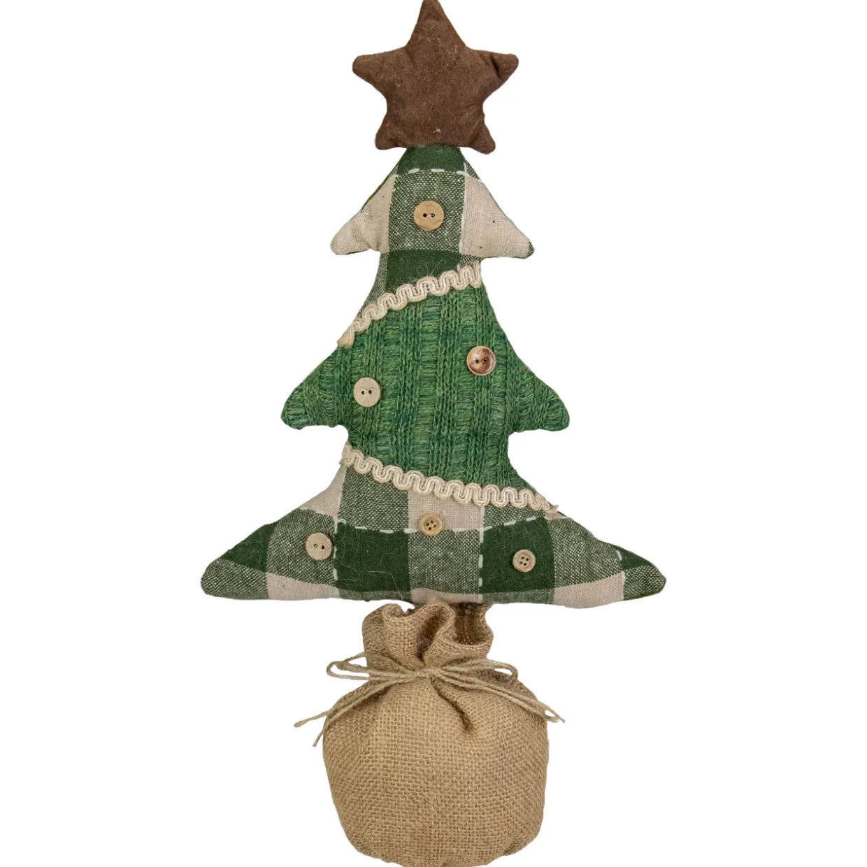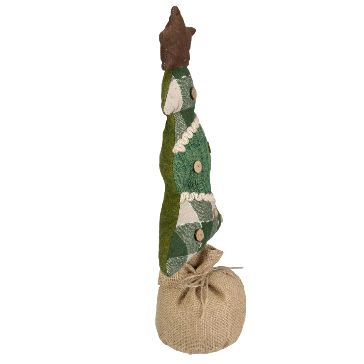 - Green Buffalo plaid burlap fabric mixed with knit fabric