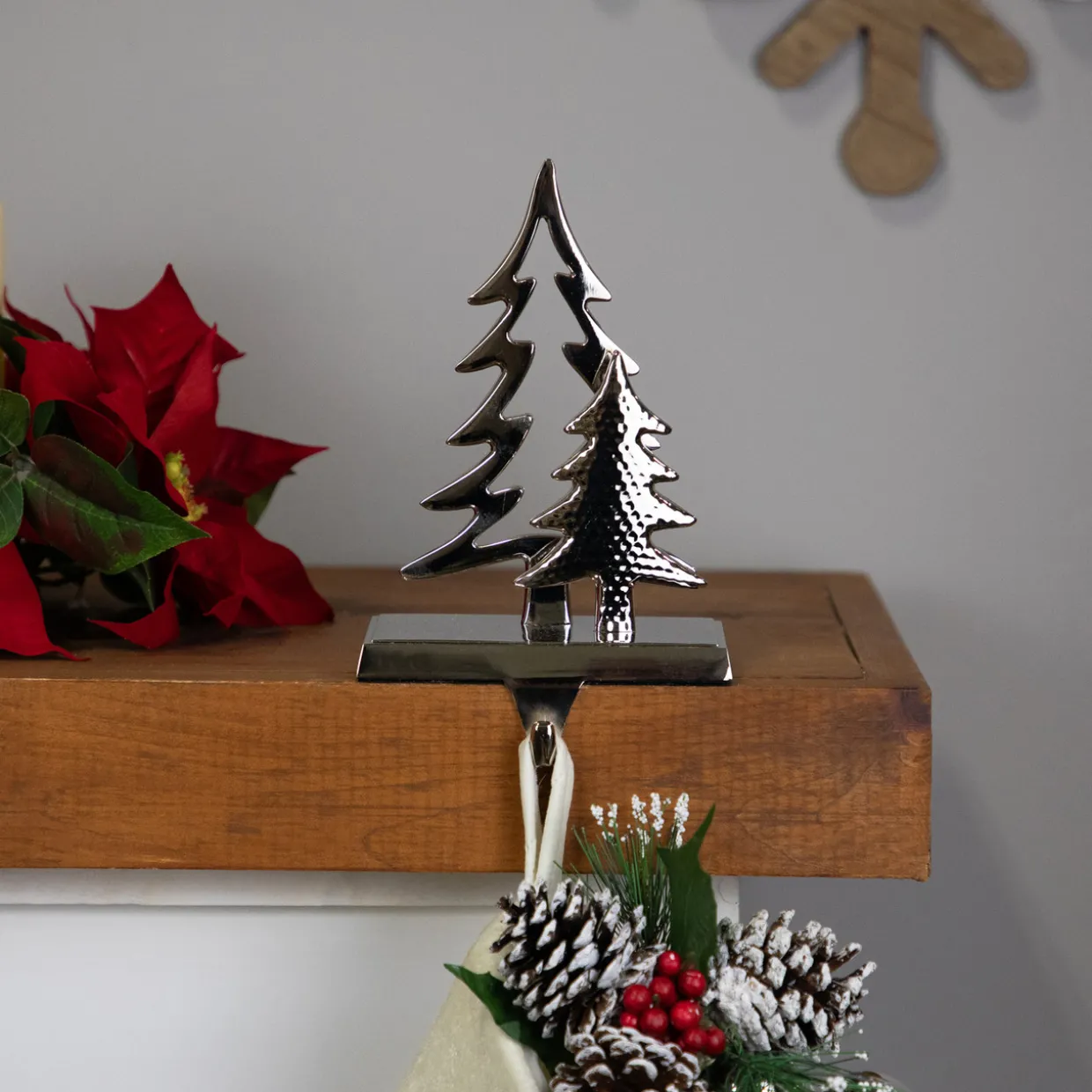 - Silver Double Pine Trees Christmas Stocking Holder