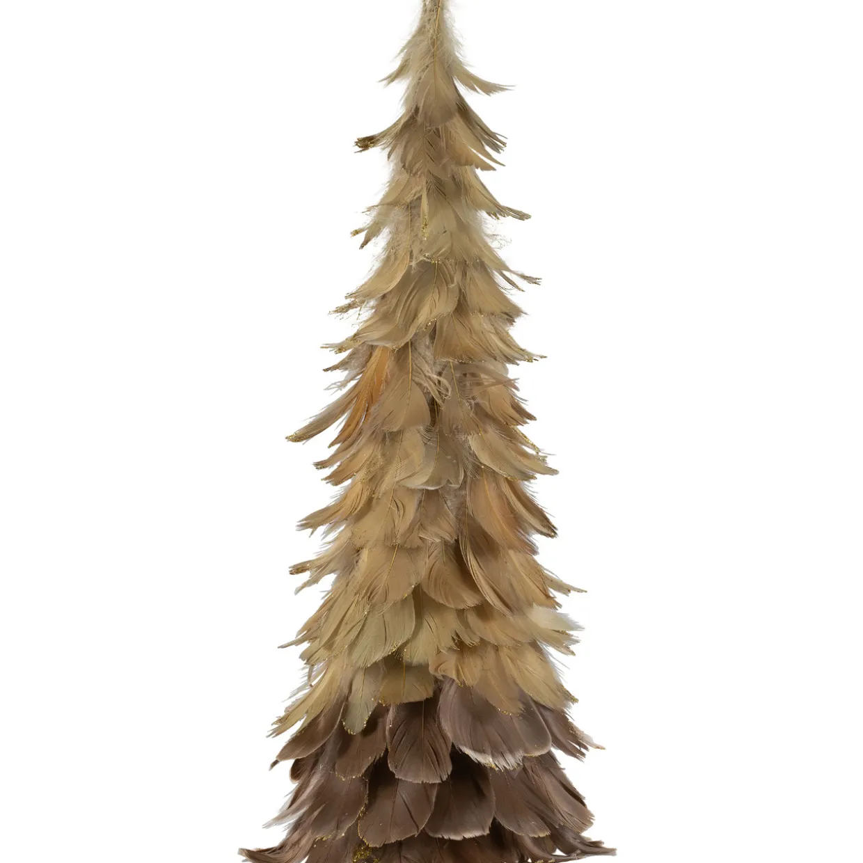 - Layered feathers in earthy hues