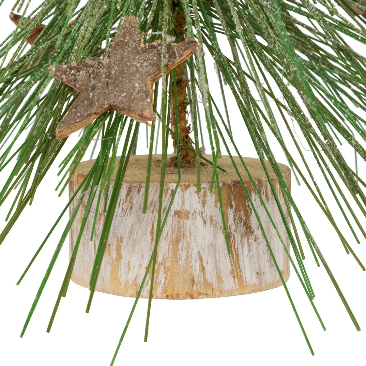 - Adorned with mini pinecones; star cutouts and rustic bells