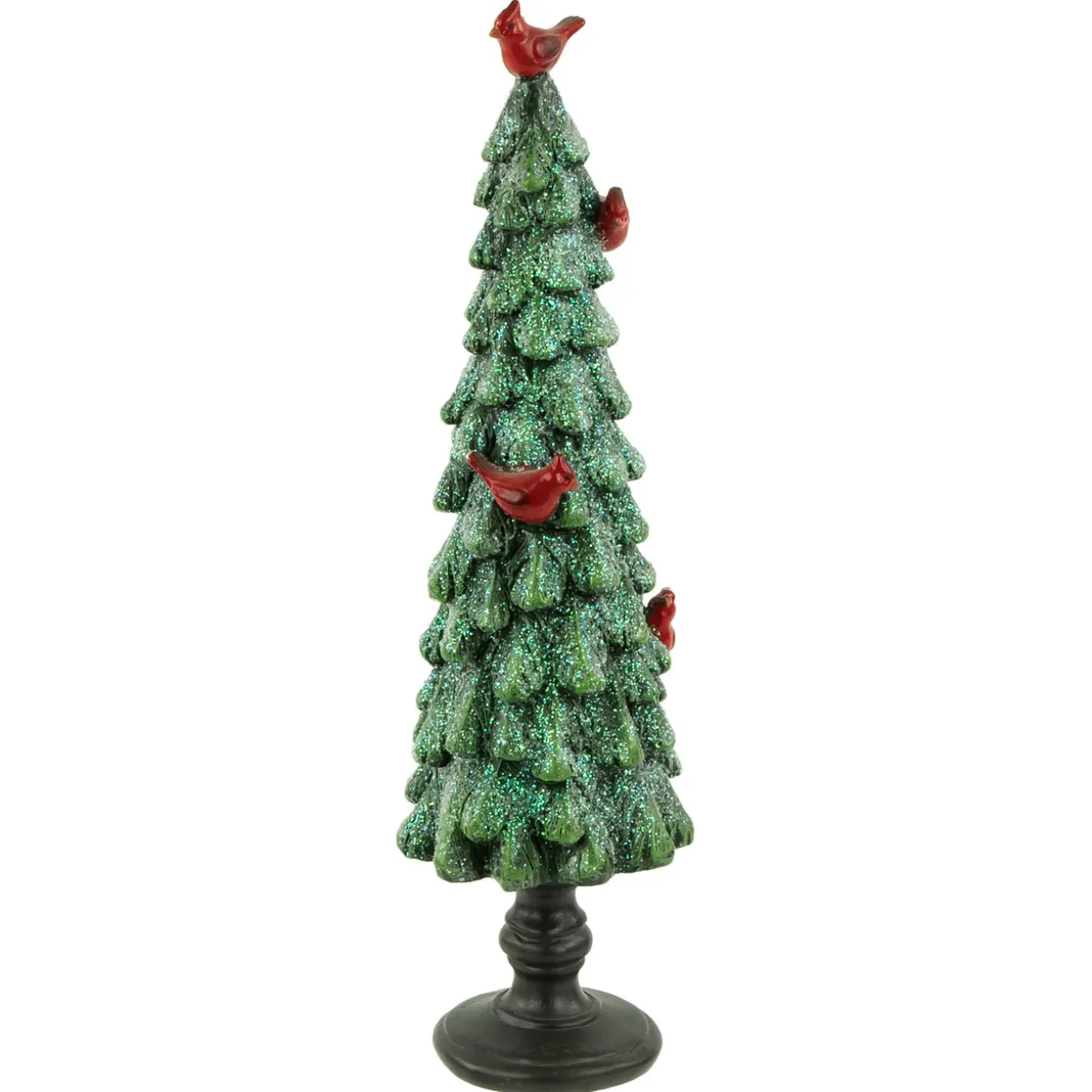- Accented with red cardinals; embellished with green glitter