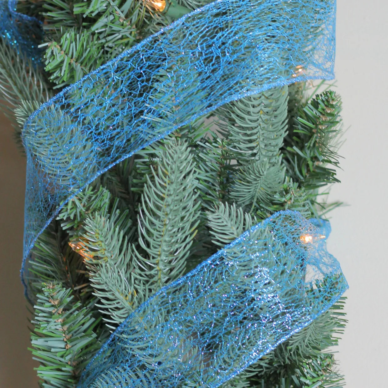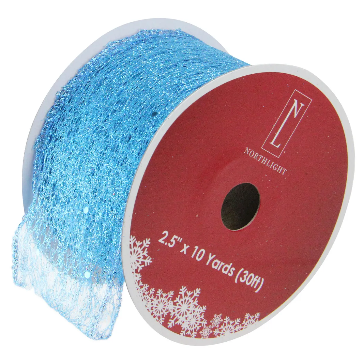 - Blue Glittering Wired Decorating Christmas Craft Ribbon