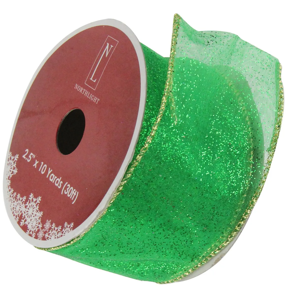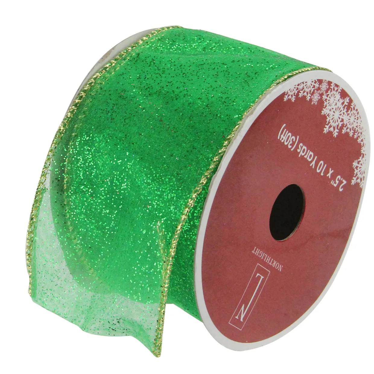 - Green And Gold Glittering Wire Crafted Christmas Ribbon