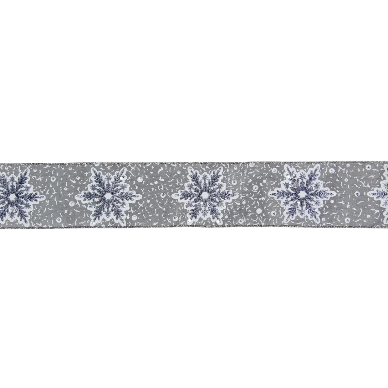 - Grey And White Shimmering Snowflake Wired Ribbon