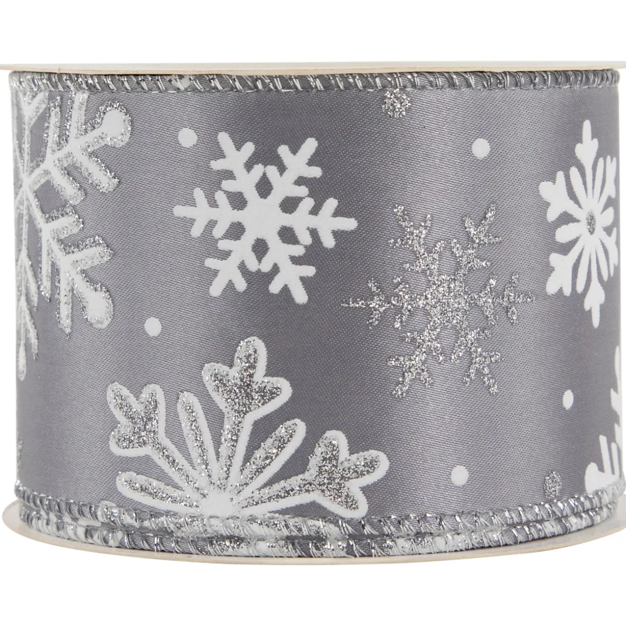 - Adorned with white and glittery snowflakes