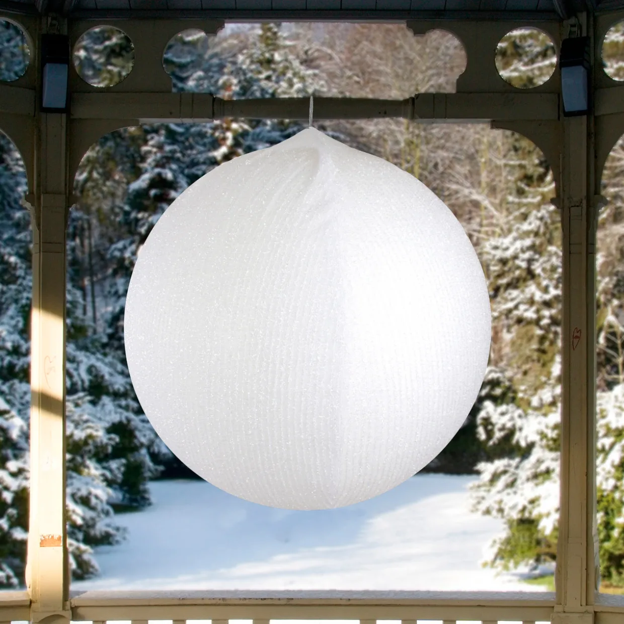 - White Tinsel Outdoor Christmas Ball Ornament