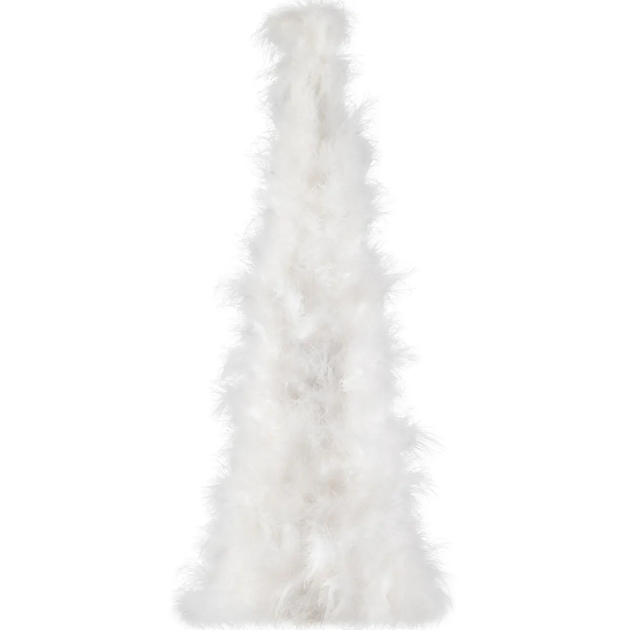 - Layered white feathers fill the tree