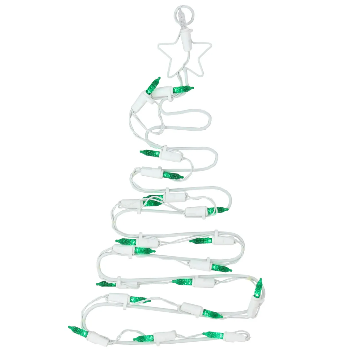 - White Lighted Christmas Tree With Bow Window Silhouette