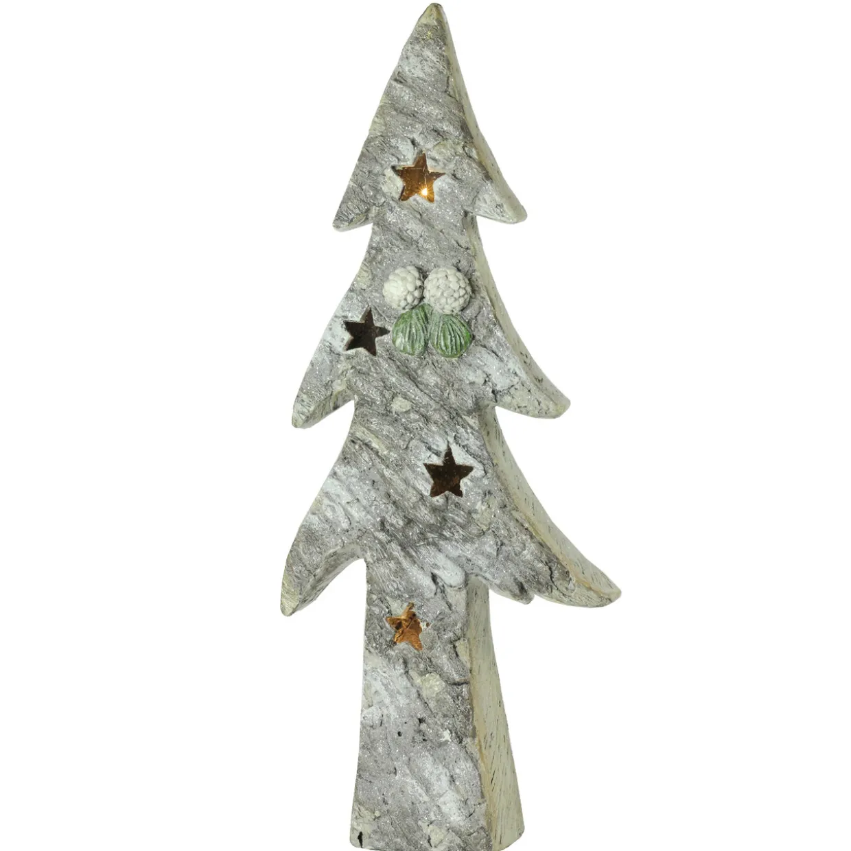 - Christmas tree is decorated with glitter and star cutouts