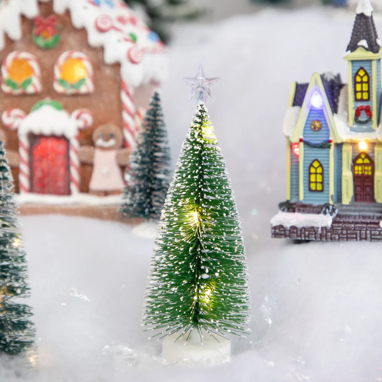 - Accented with faux snow