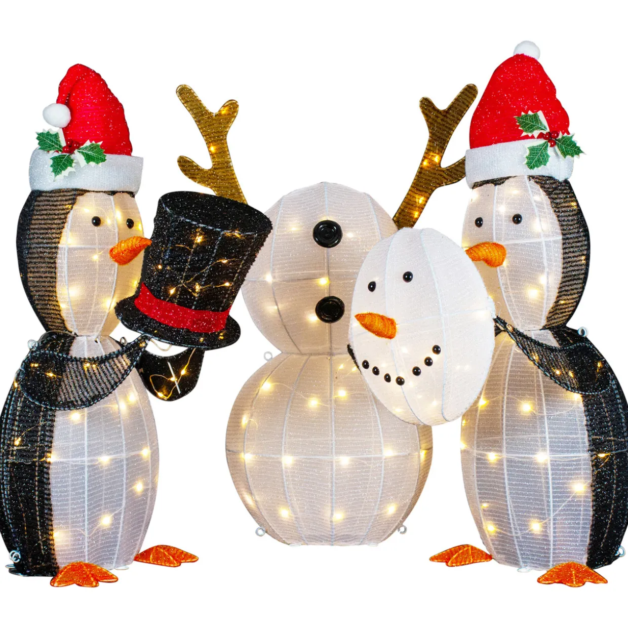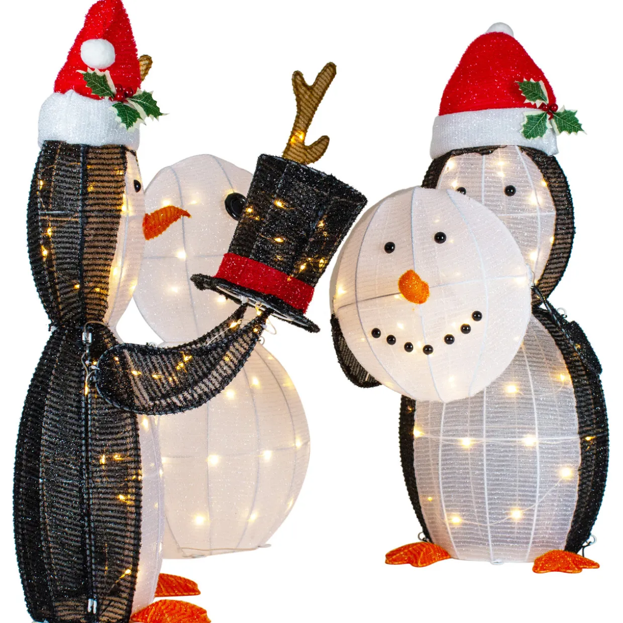 - Set Of 3 Penguins Playing With Snowman Yard Decoration