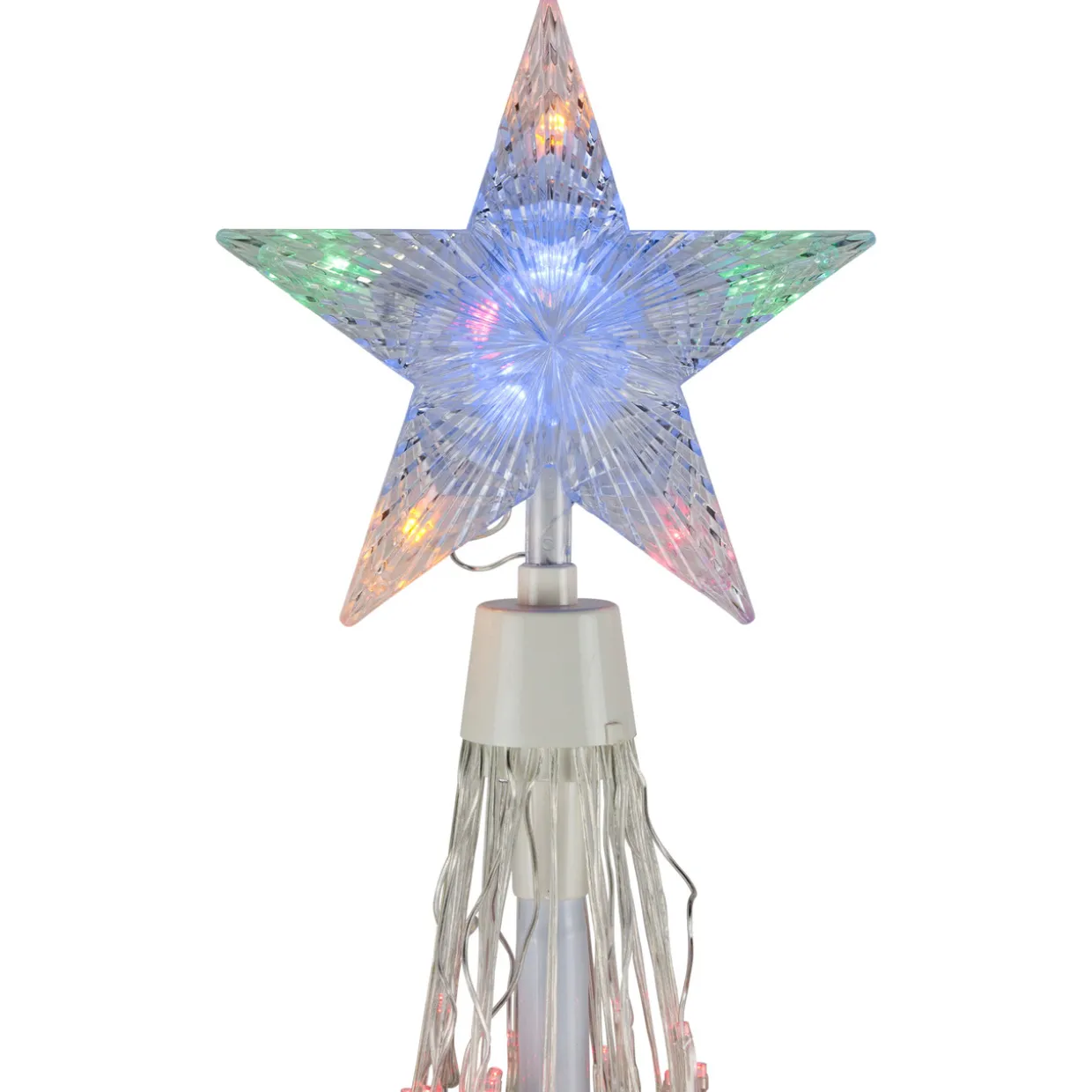 - Star tree topper is lighted with blue lights