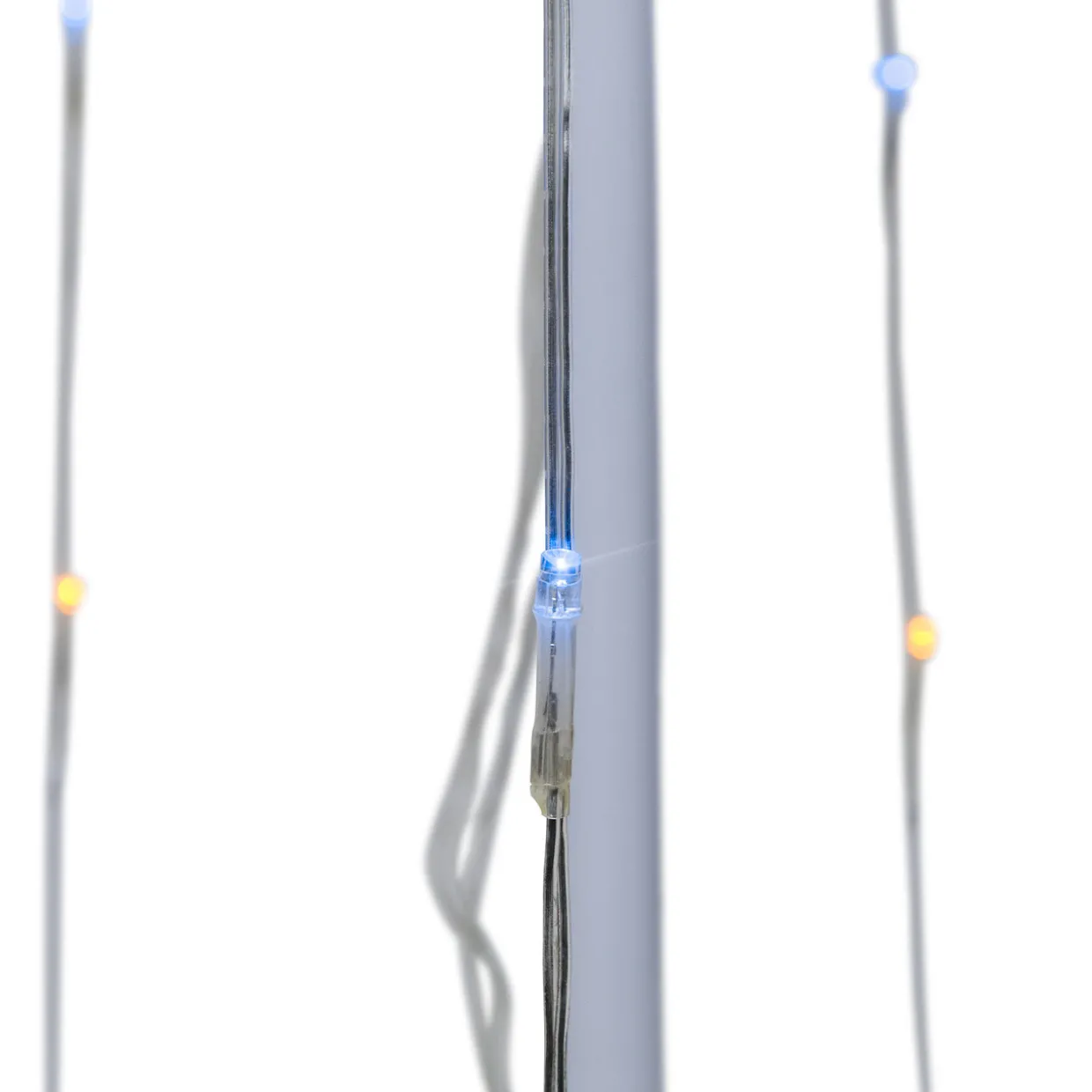 - Cycles through 9 dazzling lighting effects; red, green, blue and orange bulbs