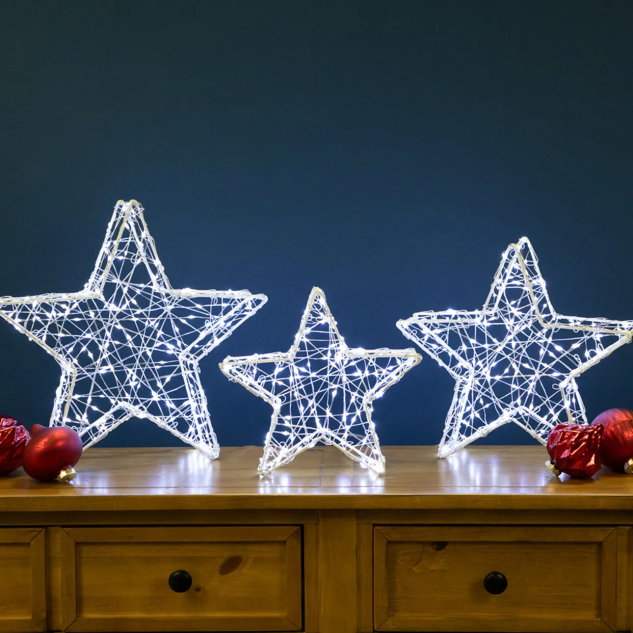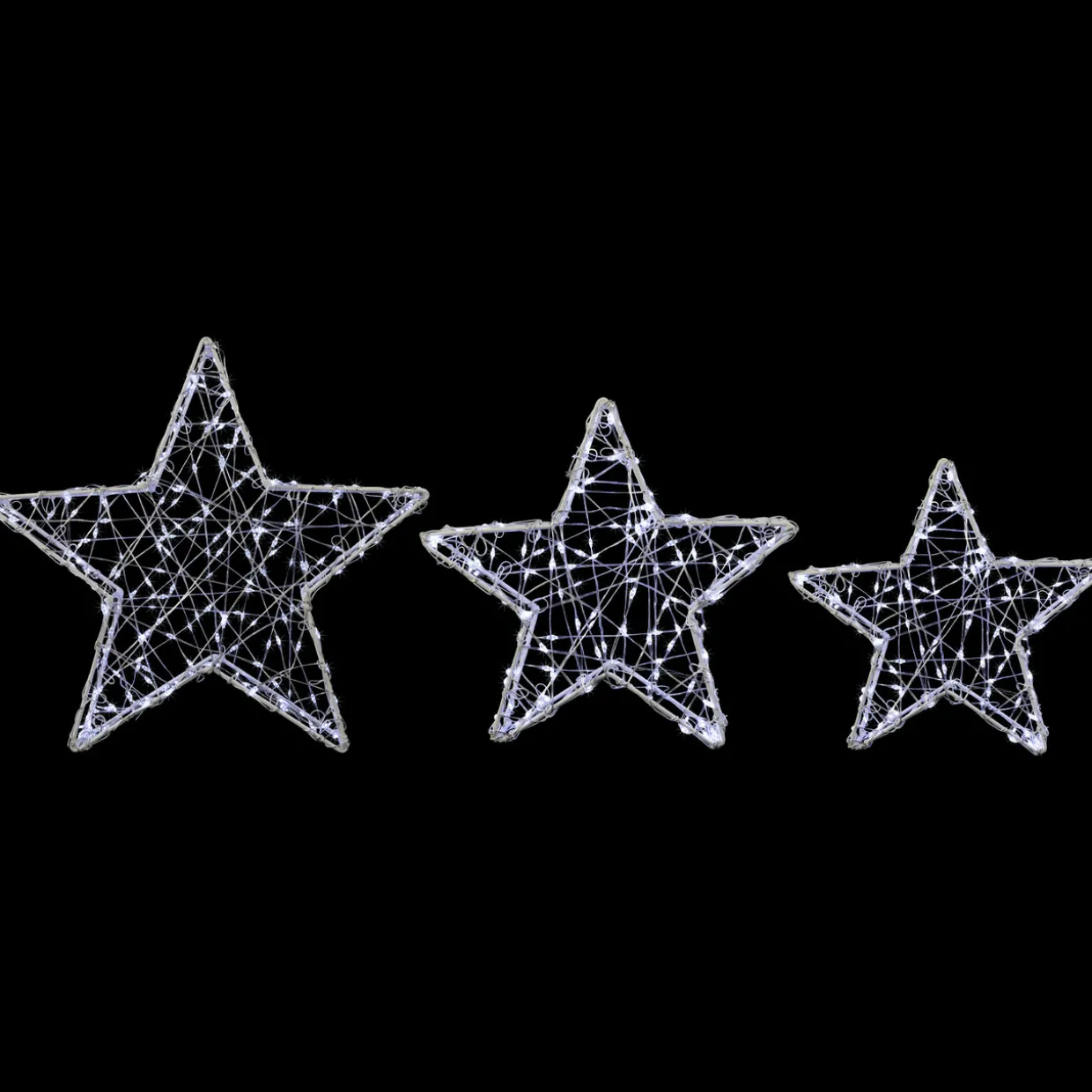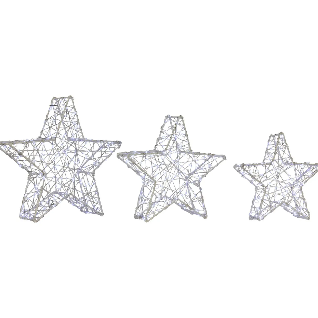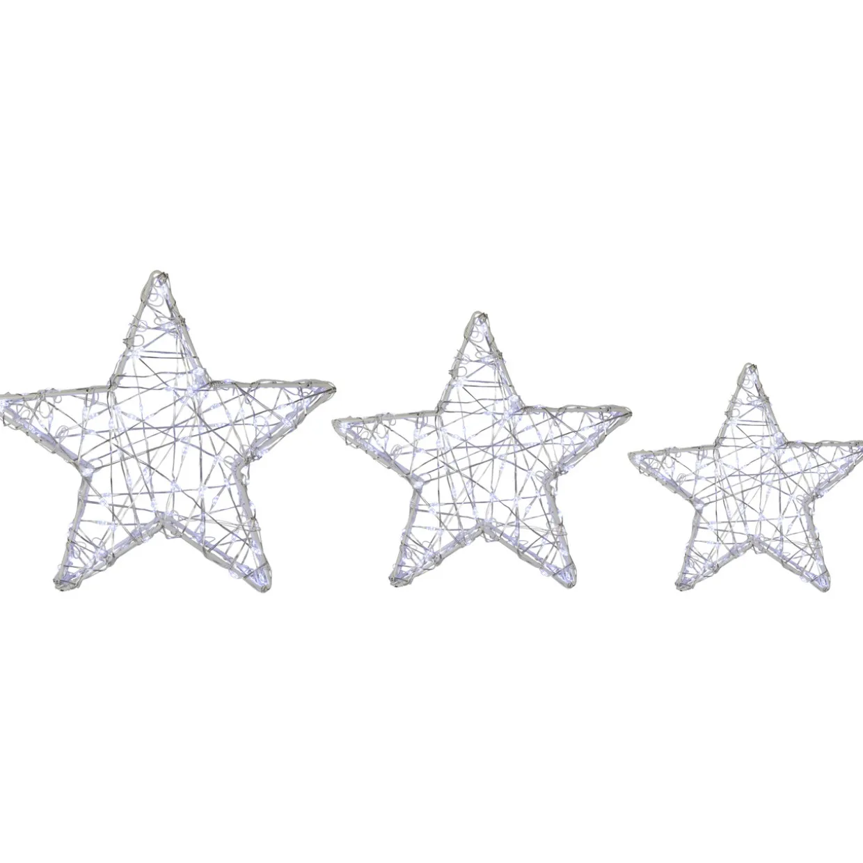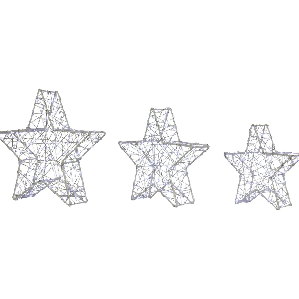 - White Wire 3D Christmas Stars; Set Of 3