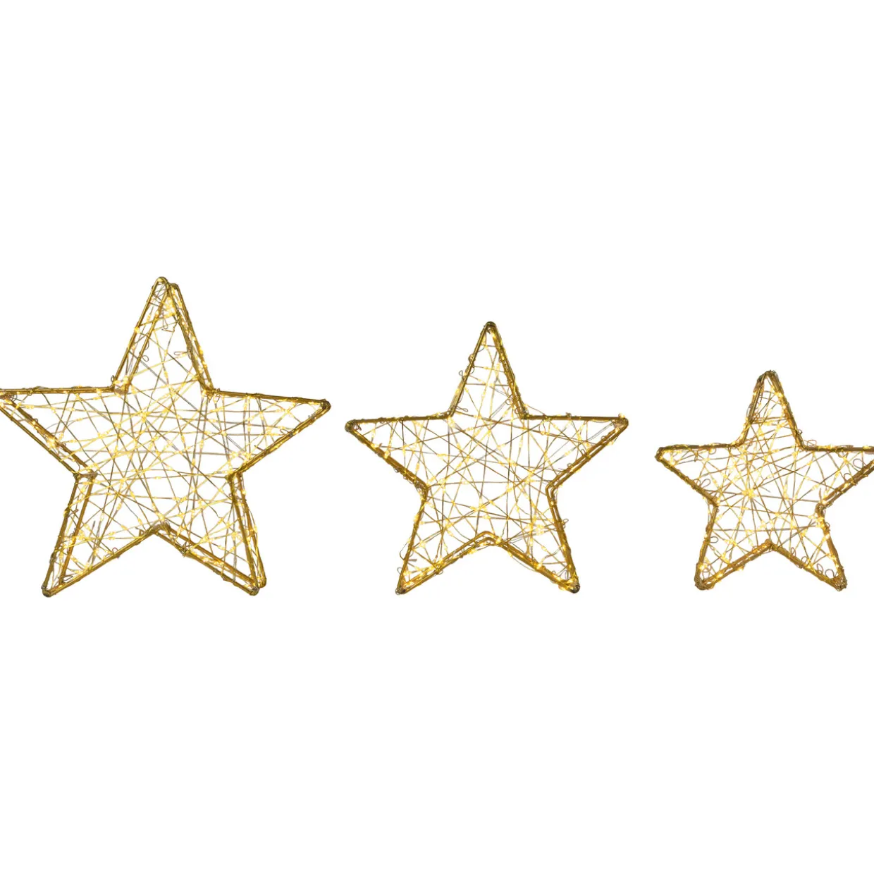 - Gold Wire 3D Christmas Stars; Set Of 3