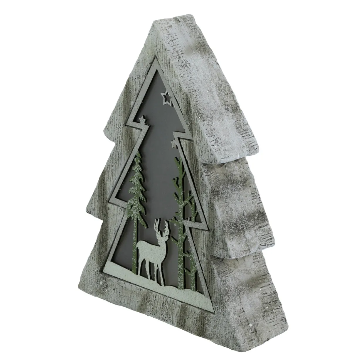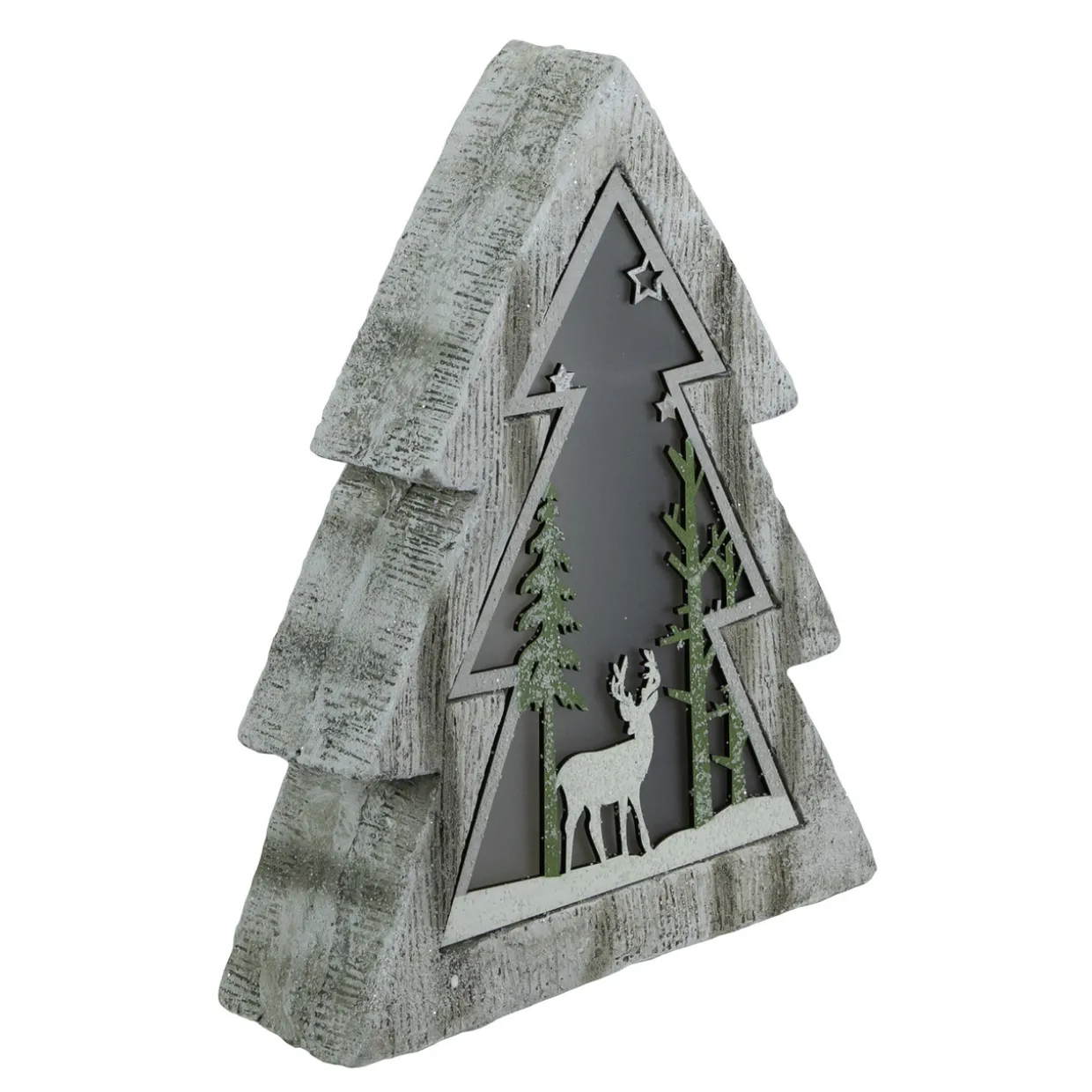 - Led Lighted Reindeer In Woods Tree Scene Christmas Decoration