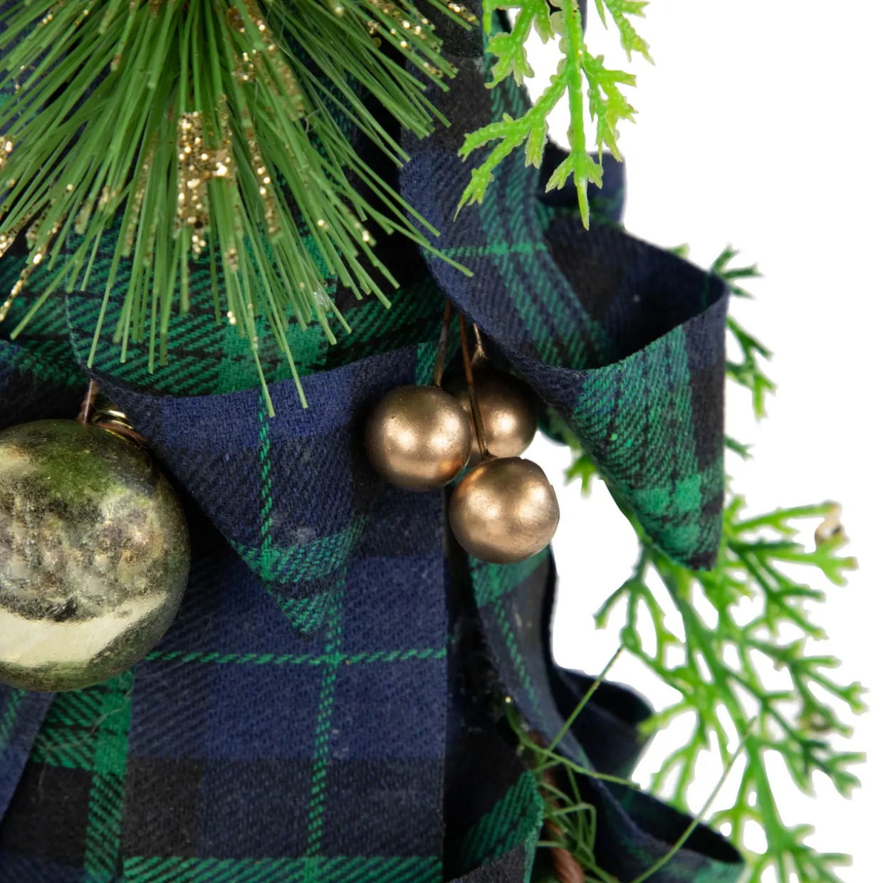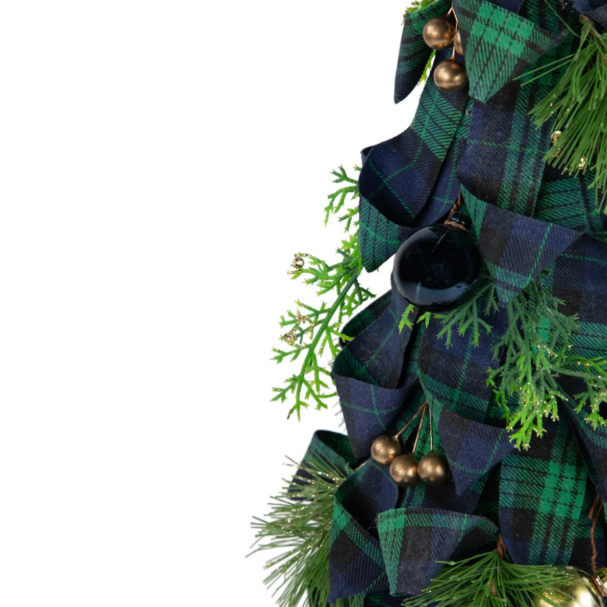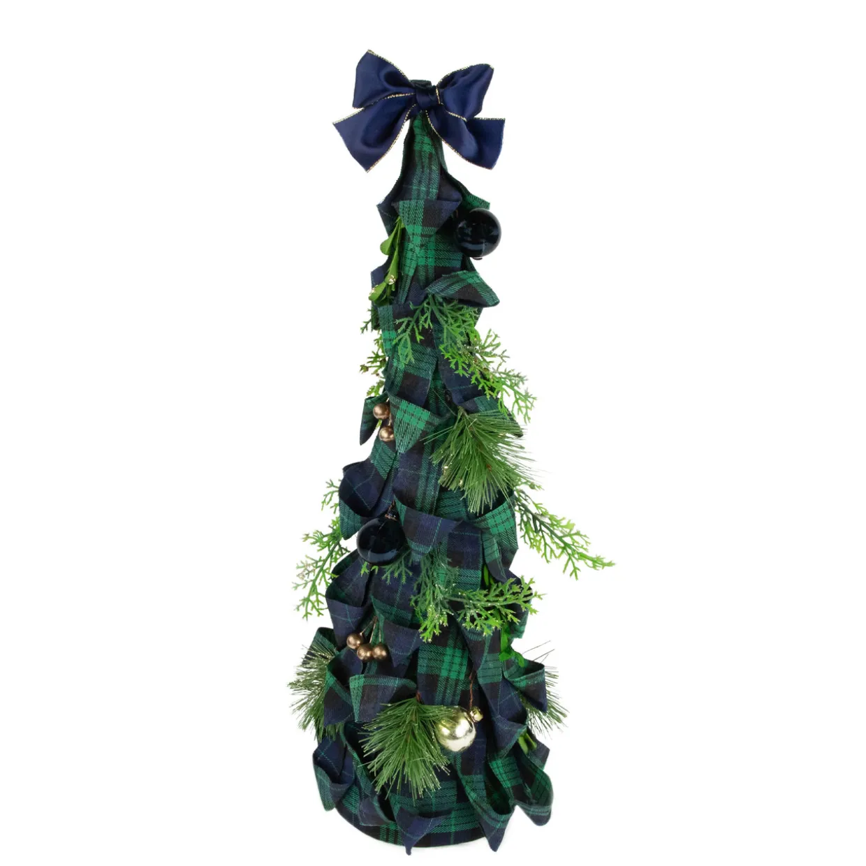 - Blue And Green Plaid Ribbon Bow Christmas Cone Tree