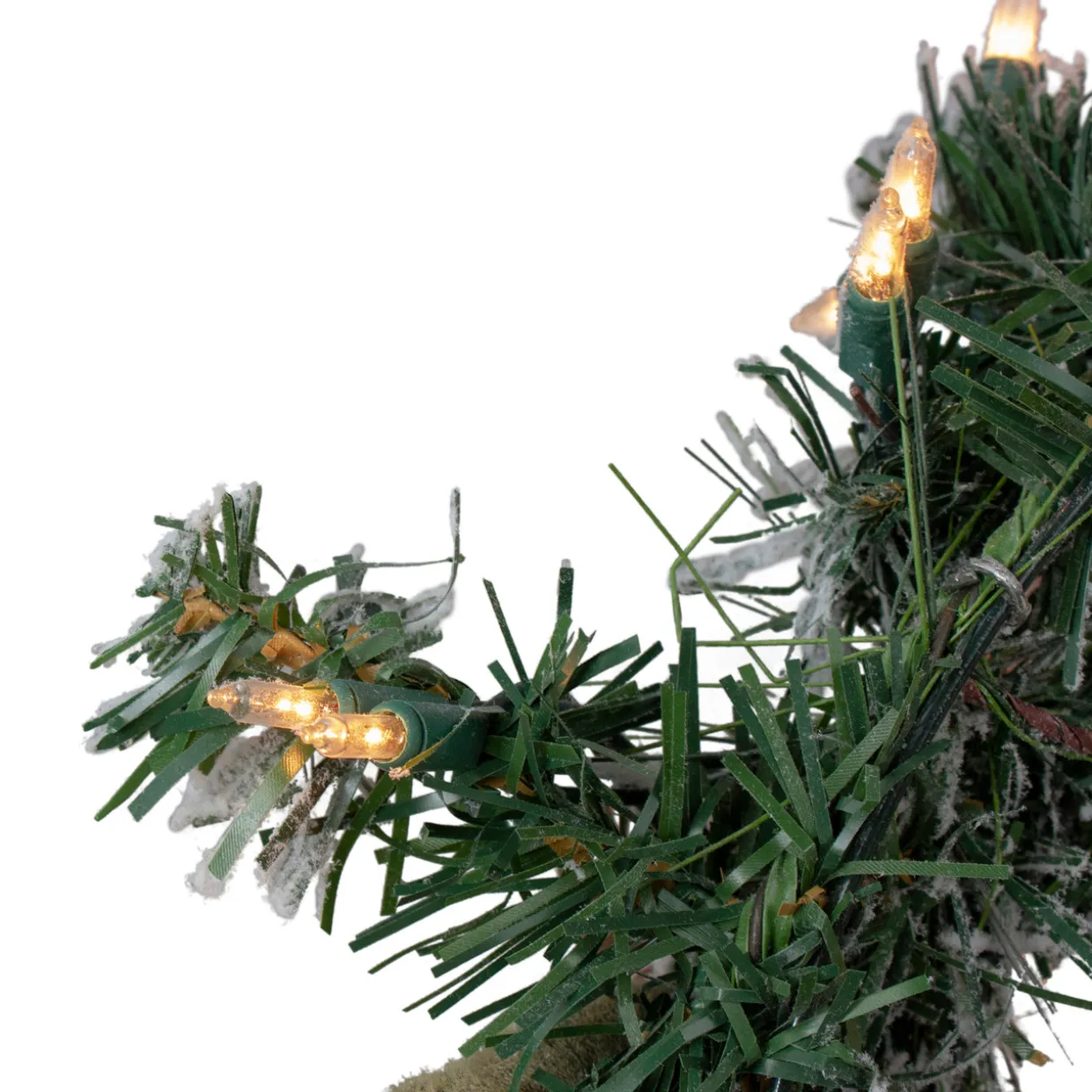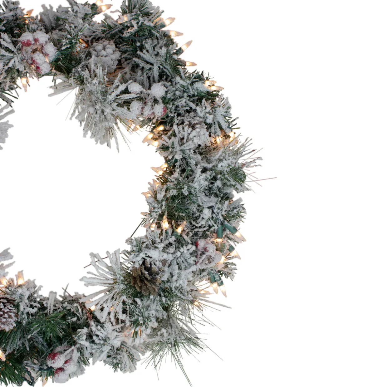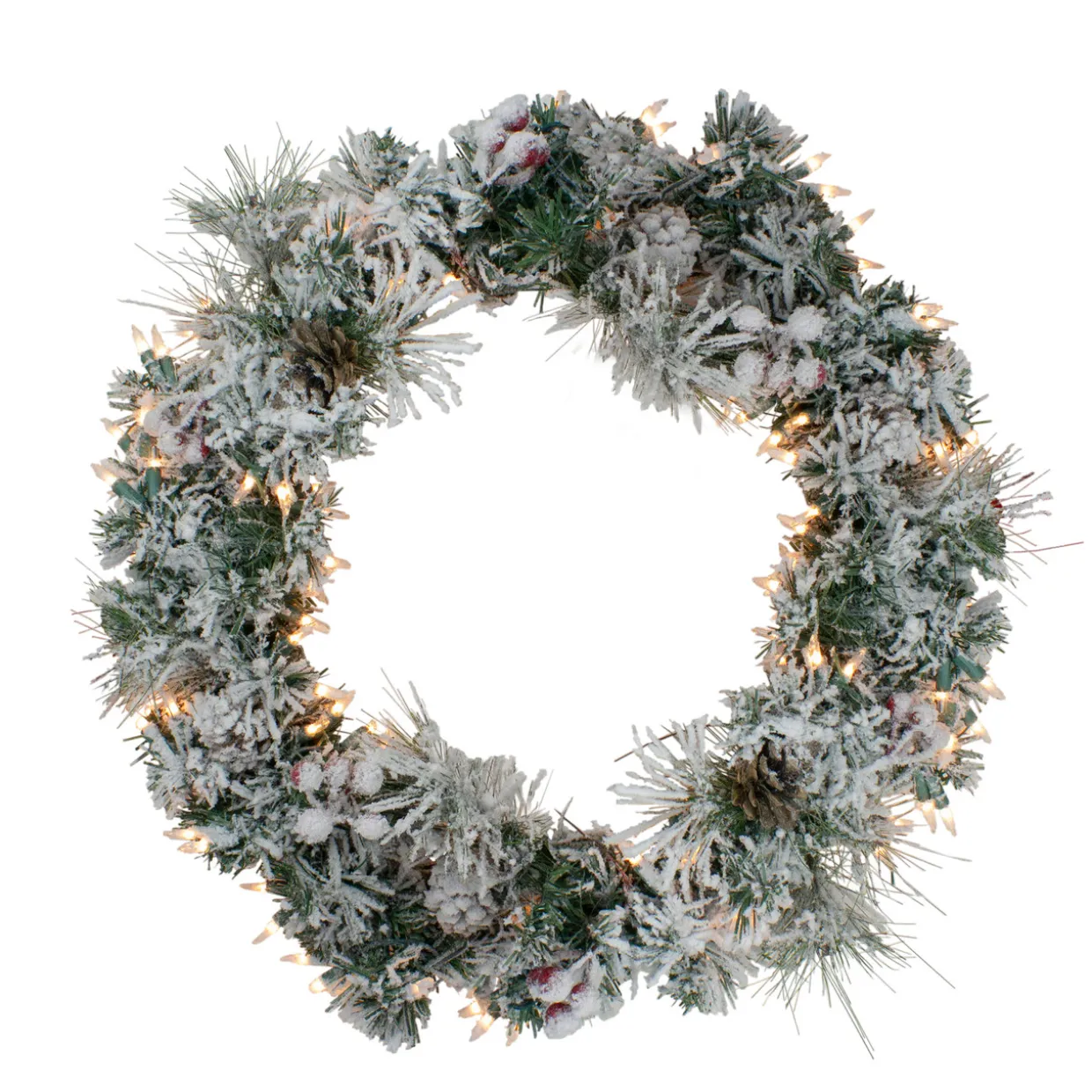 - Prelit Flocked Artificial Christmas Wreath With Clear Lights