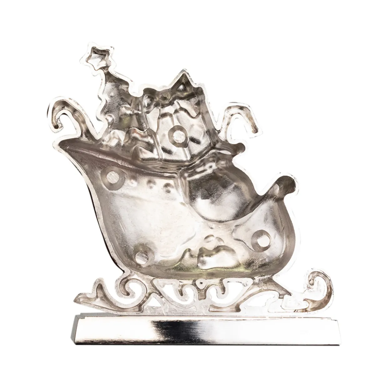 - Present filled sleigh design in green and red hues