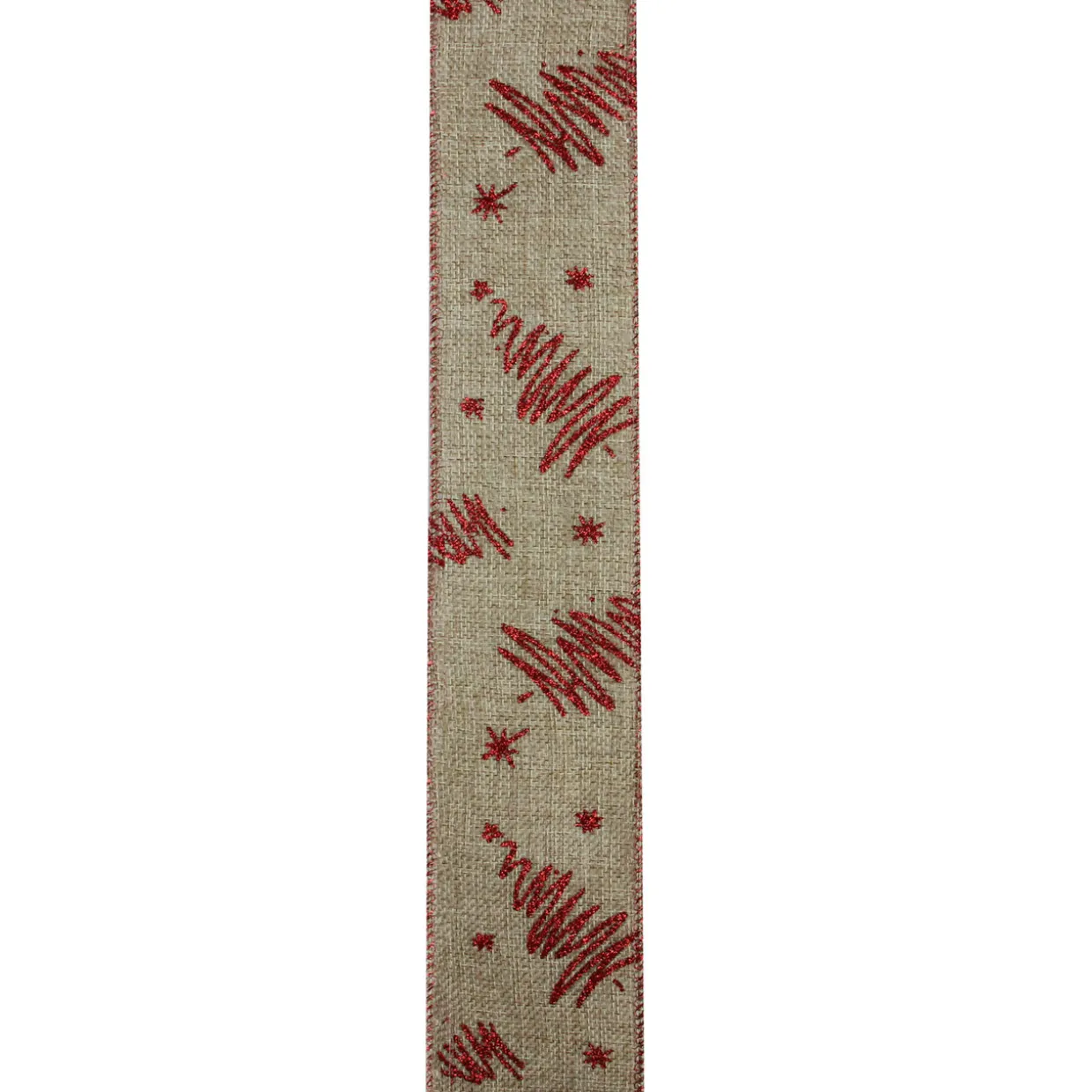 - Red And Beige Tree Wired Christmas Craft Ribbon