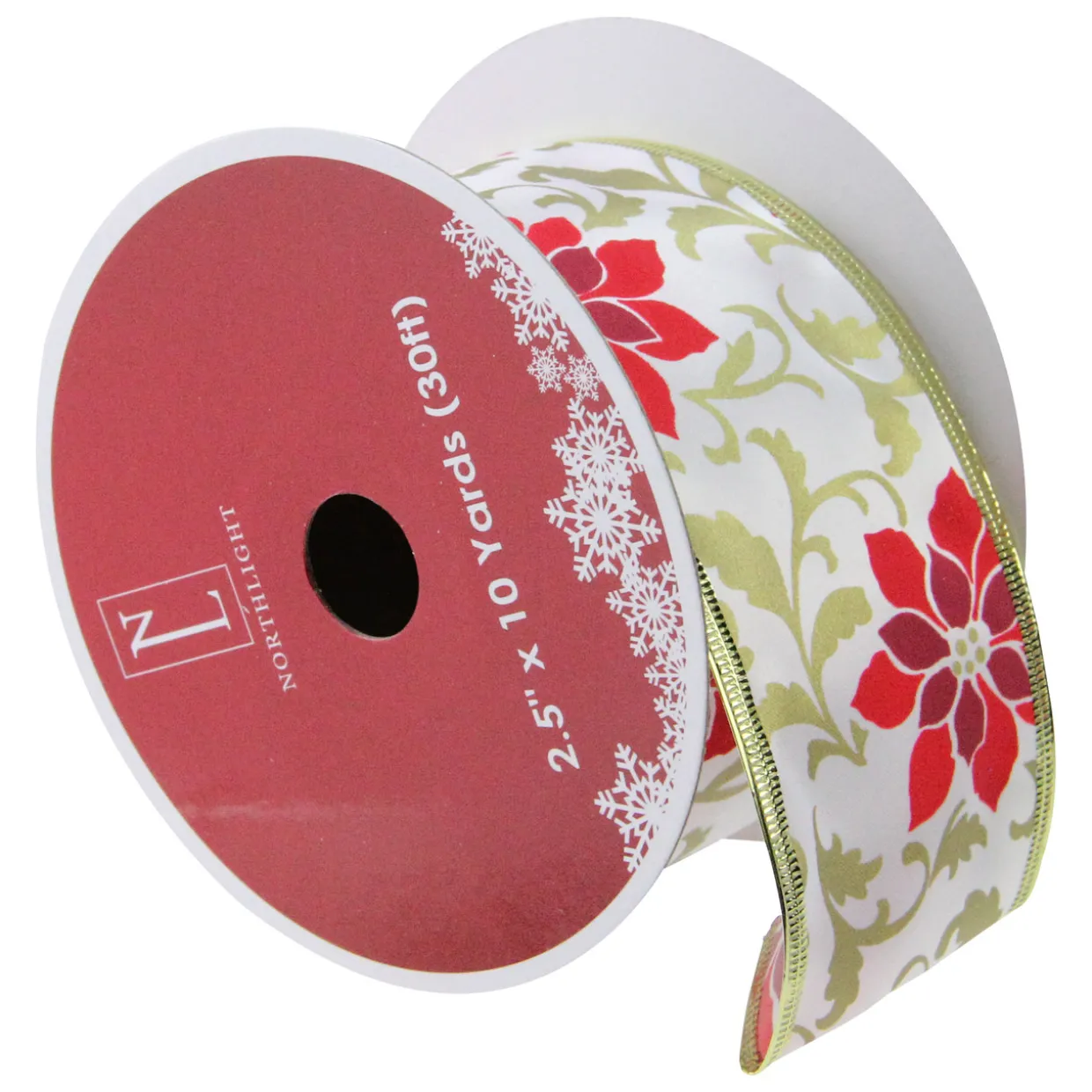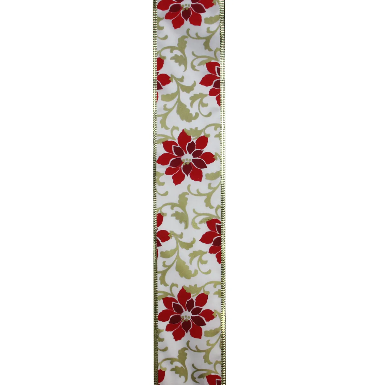 - Red And Gold Poinsettia Print Wired Christmas Craft Ribbon