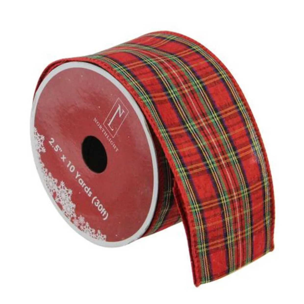 - Features a plaid patterned wired ribbon